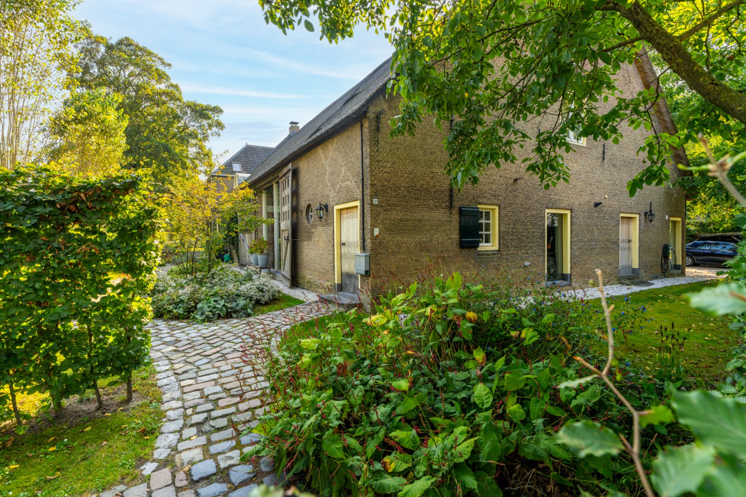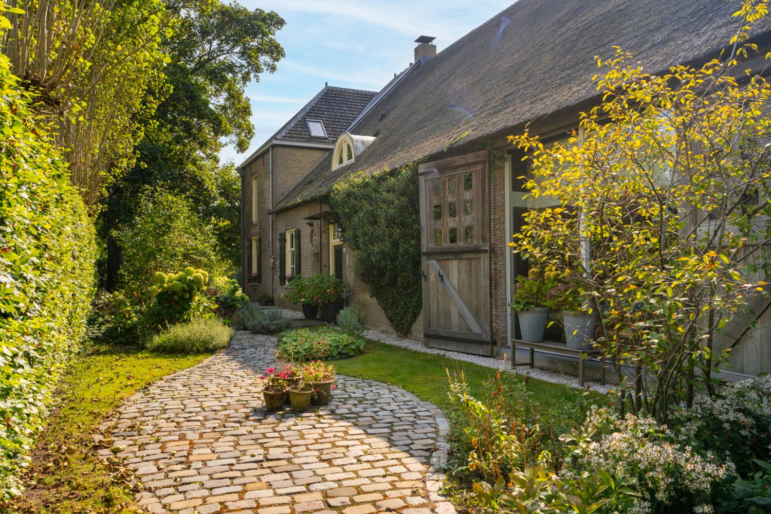 Half verscholen achter imposante bomen en een dikke beukenhaag ligt deze woonboerderij uit 1795. Een rijksmonument waarvan het achterhuis in 2012 volledig is verbouwd met behoud van de originele elementen, die bijzonder veel stijl aan het interieur verlenen. Prachtige houten gebinten in de living, die als balletdansers door de hoge open ruimte lijken te zweven, terwijl ze perfect in balans zijn. In de vide boven de woonkamer komen de houten spantconstructies in de hoge nok op een haast mystieke wijze samen. De goed geoutilleerde woonkeuken is een paradijs voor kookliefhebbers. Ook in deze ruimte omarmt de intieme, geborgen sfeer van weleer moeiteloos het hedendaagse comfort. In het oorspronkelijke voorhuis stelen wederom de authentieke elementen de show. De waskamer is nog geheel betegeld met witjes waardoor de houtkachel in de schouw met schildpadtegels fraai tot zijn recht komt. En niet te vergeten de voortuin. Doordat het huis met zijn achterzijde aan de Meerhoek ligt, ontwaart u hier de echte schoonheid van het pand. In de witte gevel schitteren de hoge ramen met buitenluiken in al hun eenvoud. Ook geeft het pand hier zijn enorme schat aan ruimte prijs. Daarbij is de voortuin zelf een lust voor het oog. Uitgestrekte gazons met volgroeide fruitbomen en geurende bloemen. Met de haast koninklijke ‘groene jas’ van de voorentree als kers op de taart.
