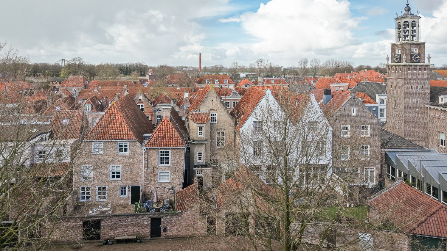 Stap binnen in het herenhuis ‘In de Sonne’, een rijksmonument uit 1614 met een rijke geschiedenis die teruggaat tot de tijd dat het pand nog ‘In de Zwaen’ heette en vermoedelijk als herberg diende. Dit rijksmonument combineert vierhonderd jaar geschiedenis met modern wooncomfort en is uitstekend onderhouden en instapklaar. Het werd in 2019 gedurende zeven maanden volledig gerenoveerd. De woning beslaat circa 183 m² woonoppervlak verdeeld over drie verdiepingen, met een sfeervolle woonkamer voorzien van een houten schouw en houtkachel, een open keuken met hoogwaardige apparatuur en een lichte serre die uitkijkt op de omsloten tuin. De achtergevel met IJsselstenen en traptoren is een echte eyecatcher. De vijfhoekige traptoren verbindt de verdiepingen en benadrukt de unieke architectuur van het pand. Verder beschikt het huis over drie slaapkamers (mogelijkheid tot vier), een badkamer met natuurstenen elementen, een gewelfde wijnkelder en een eigen garage met parkeerplek, een zeldzaamheid binnen de vesting. Vanuit de tuin en het huis heeft u een fraai zicht op de imposante Catharijnekerk.