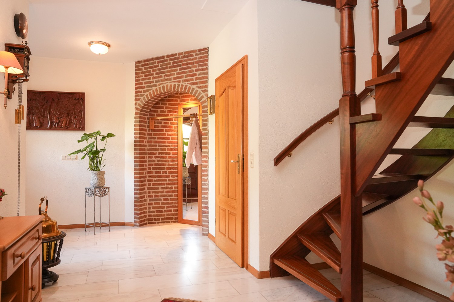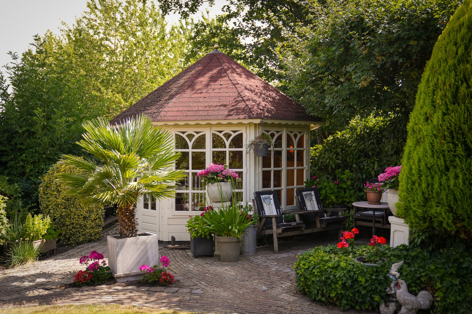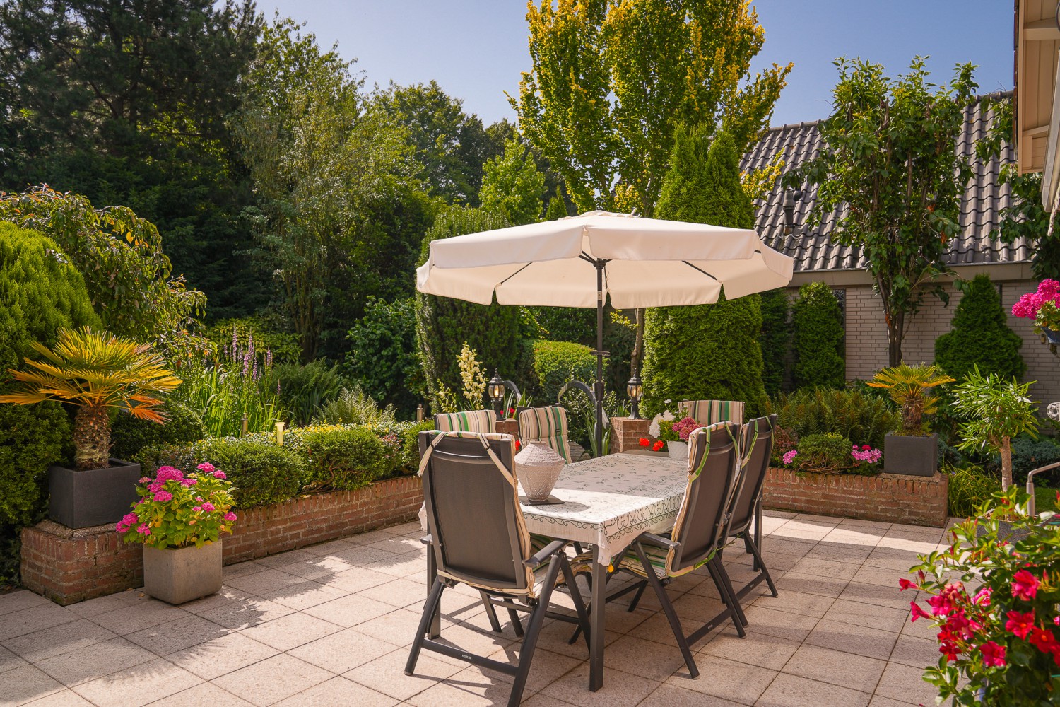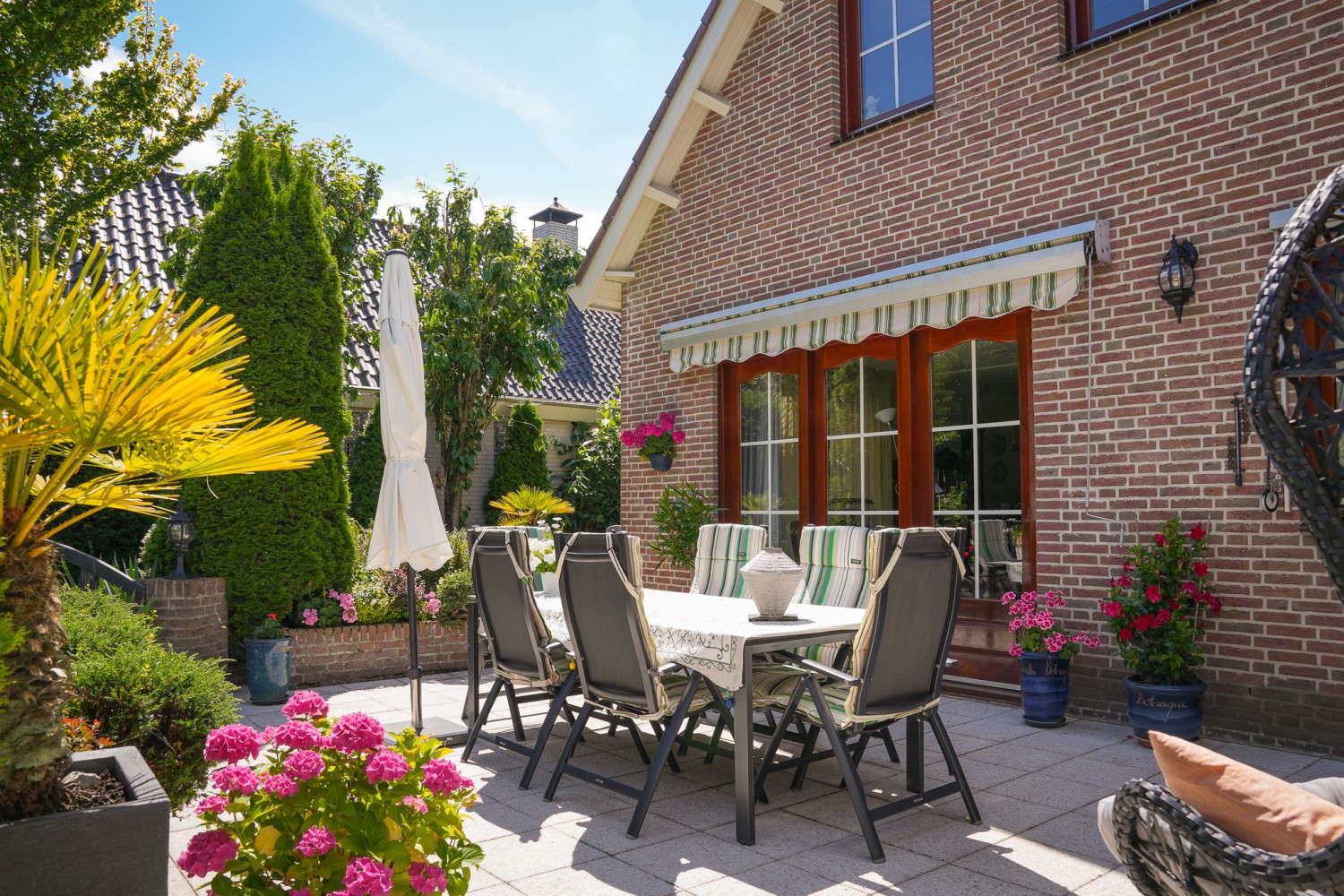 Een tikje robuust ligt deze villa uit 1992 aan een doodlopende straat. De vriendelijke gevels harmoniëren fraai met het samengestelde dak, dat het huis als een warme deken omhult. Rust kenmerkt de omgeving, aan de achterzijde ligt deze woning vrij. De hoogwaardige bouwkwaliteit komt ook terug in het interieur. De zandstenen schouw met houtkachel komt fraai tot zijn recht in de verrassend ruime woonkamer. Over het ontwerp van de villa is destijds goed nagedacht, wat heeft geleidt tot een prettige en praktisch woonhuis. Comfort en ruimte kenmerken deze villa. Op de begane grond is een slaapkamer met badkamer en op de verdieping zijn vier slaapkamers, een badkamer en separaat toilet. In de achtertuin, half verscholen in het groen, staat een romantisch tuinhuisje. Het gazon in de tuin leidt als een groene loper langs alle mooie plekjes. Prachtige borders met volgroeide planten, een vijver en een terras. Hier geniet u van het buitenleven pur sang.