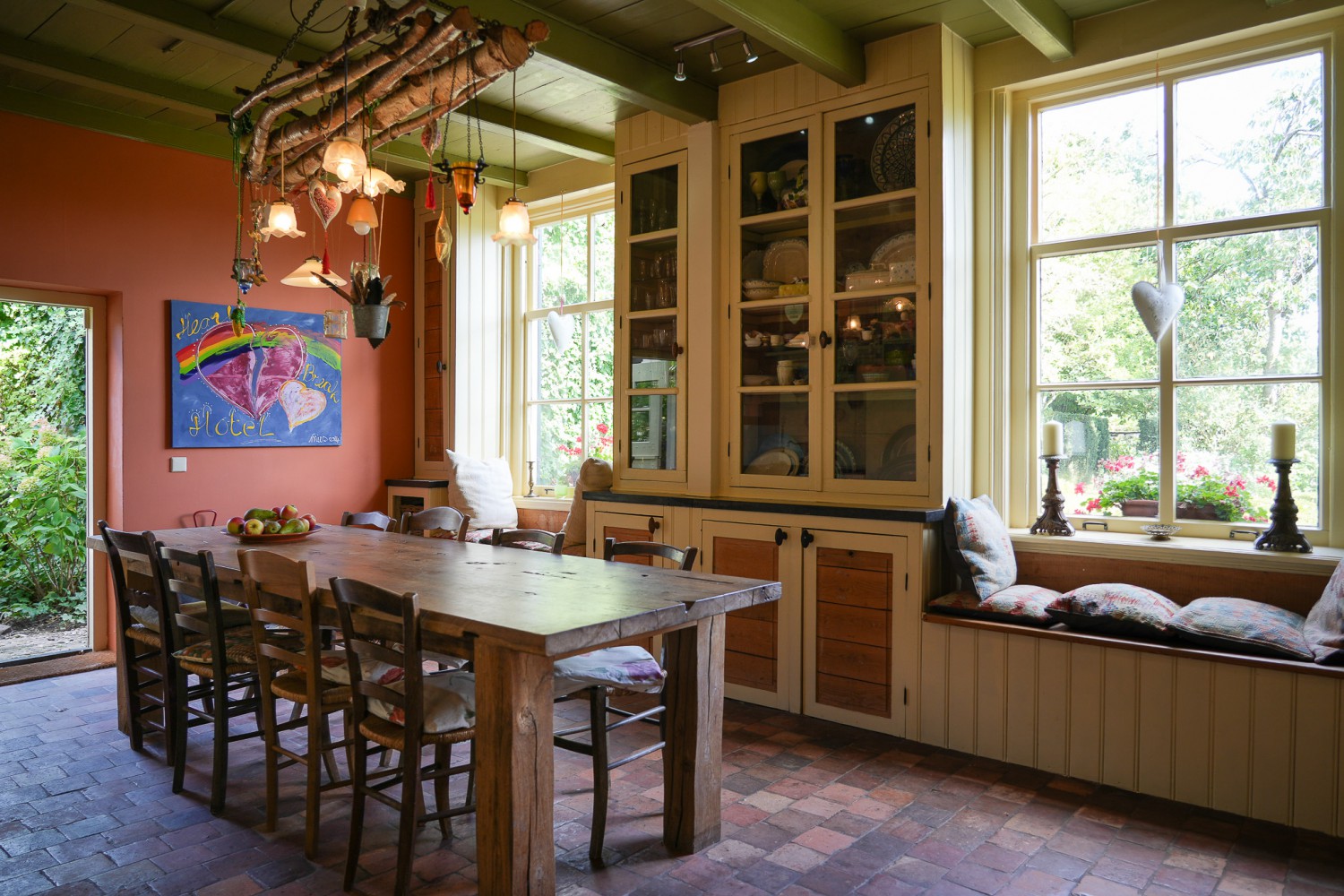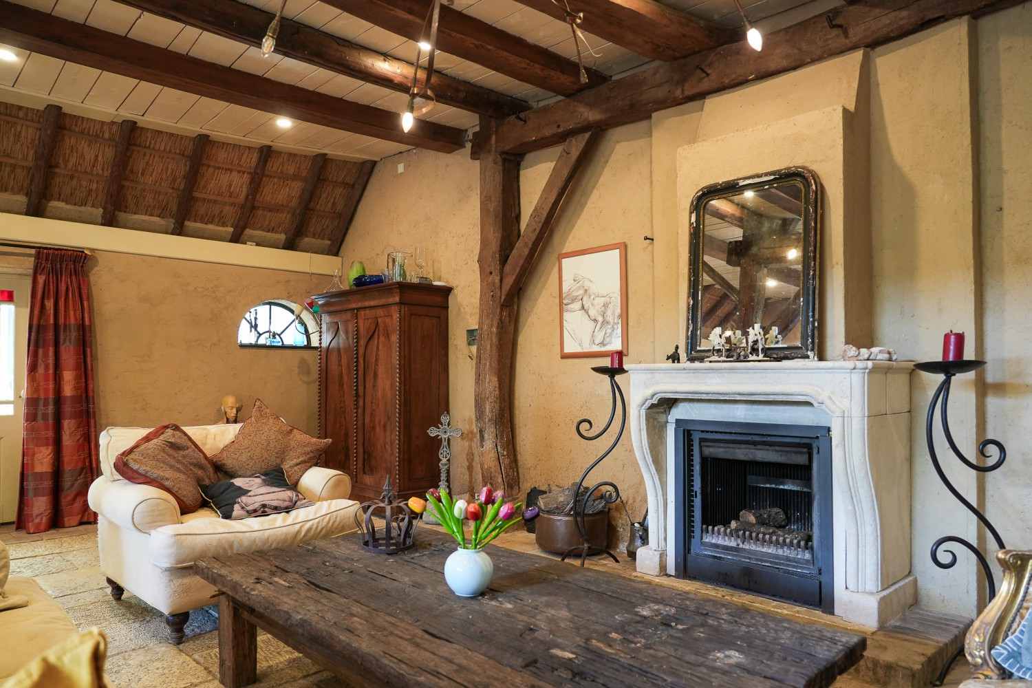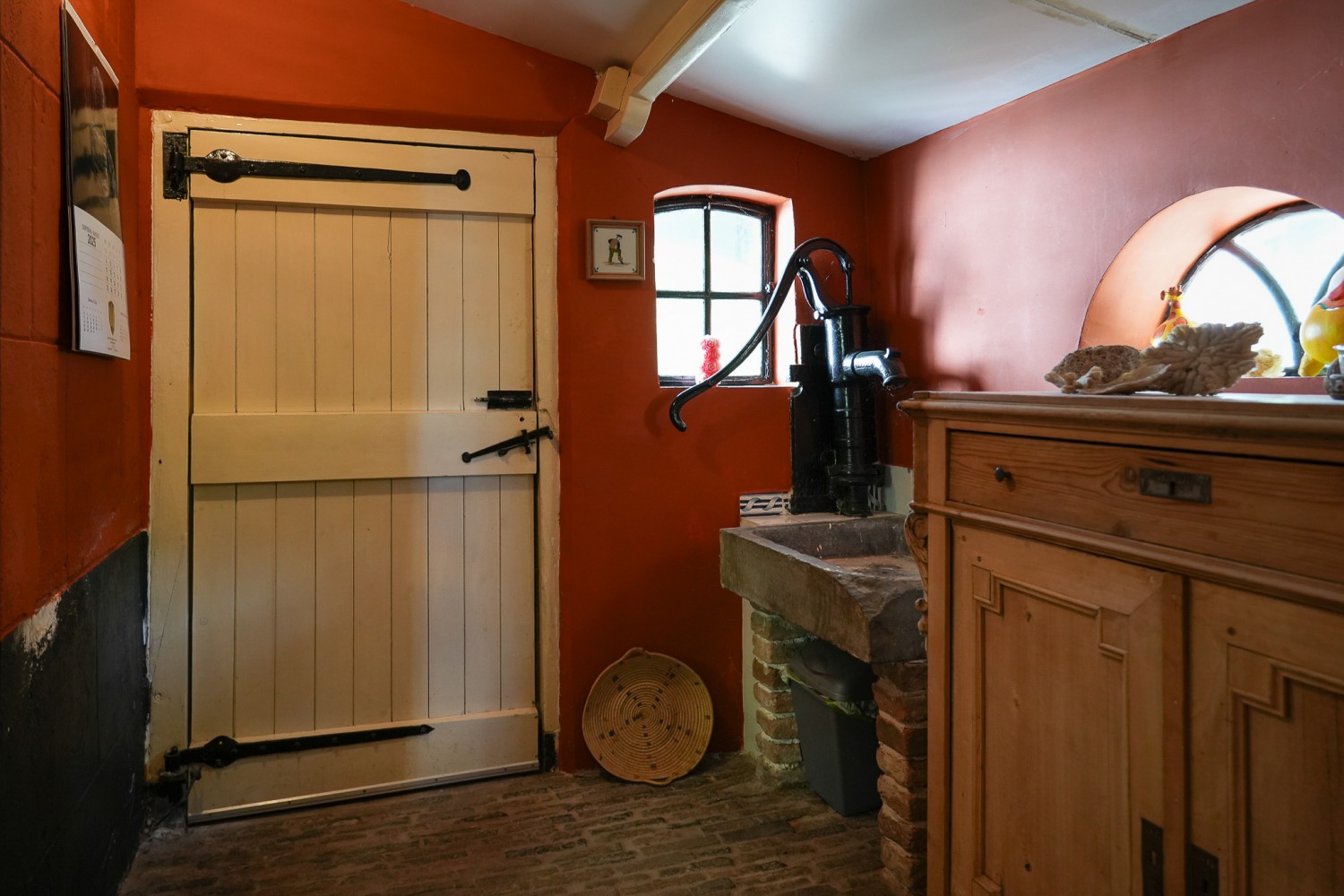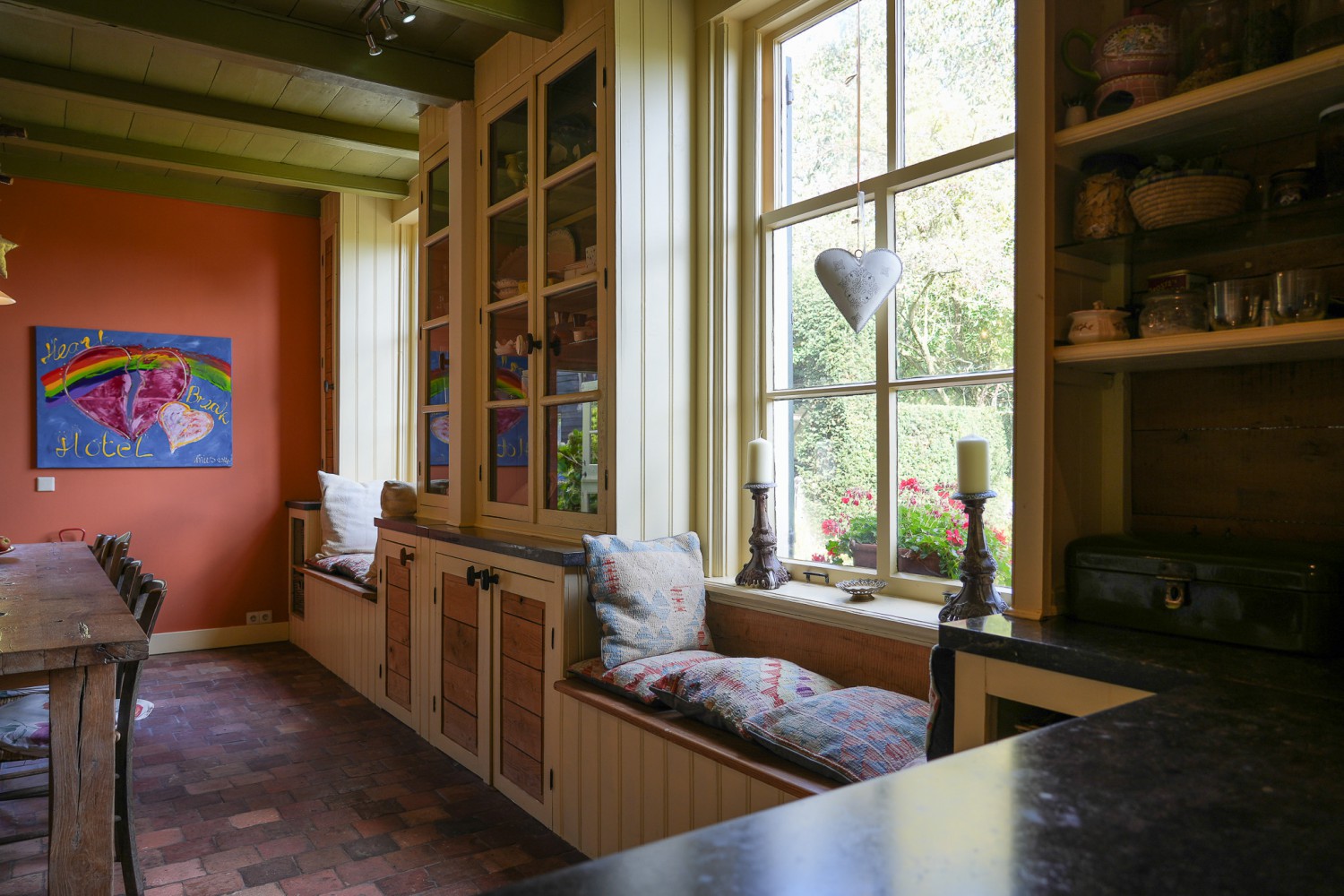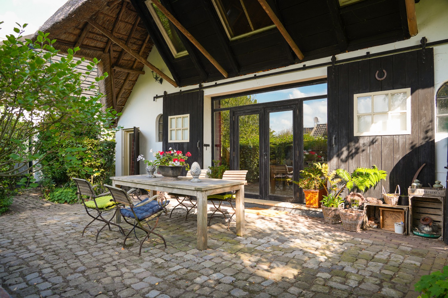 Als een warme deken omhult het rieten dak deze hoeve uit de 17e eeuw. De witte gevel en de groene luiken maken het sprookjesachtige tafereel in de landelijke omgeving compleet. De fijne tuin met zwemvijver, grote kas en boomgaard dragen bij aan de natuurlijke uitstraling van dit rijksmonument. In het interieur zijn veel oude details prachtig verweven met hedendaags comfort. In de woonkeuken ademt de sfeer van weleer door de roodstenen varkenstrog en hardstenen pompbak die in gebruik zijn als spoelbak. De zitvensterbanken verleiden tot gezellig chillen in de woonkeuken. De living is ruim en intiem. De zichtbare gebinten harmoniseren fraai met de balken aan het plafond. De warmte van de met leem gestucte wanden en de zandstenen schouw met houthaard zijn een open uitnodiging om heerlijk te ontspannen. Direct achter de living is de binnendoorgang naar het grote bijgebouw gesitueerd. Gerieflijkheid kenmerkt ook de verdieping waar beide slaapkamers over een badkamer-en-suite beschikken. De ambiance van de royale slaapkamer aan de achterzijde met open nok en bekleding van sierriet is ronduit bijzonder.