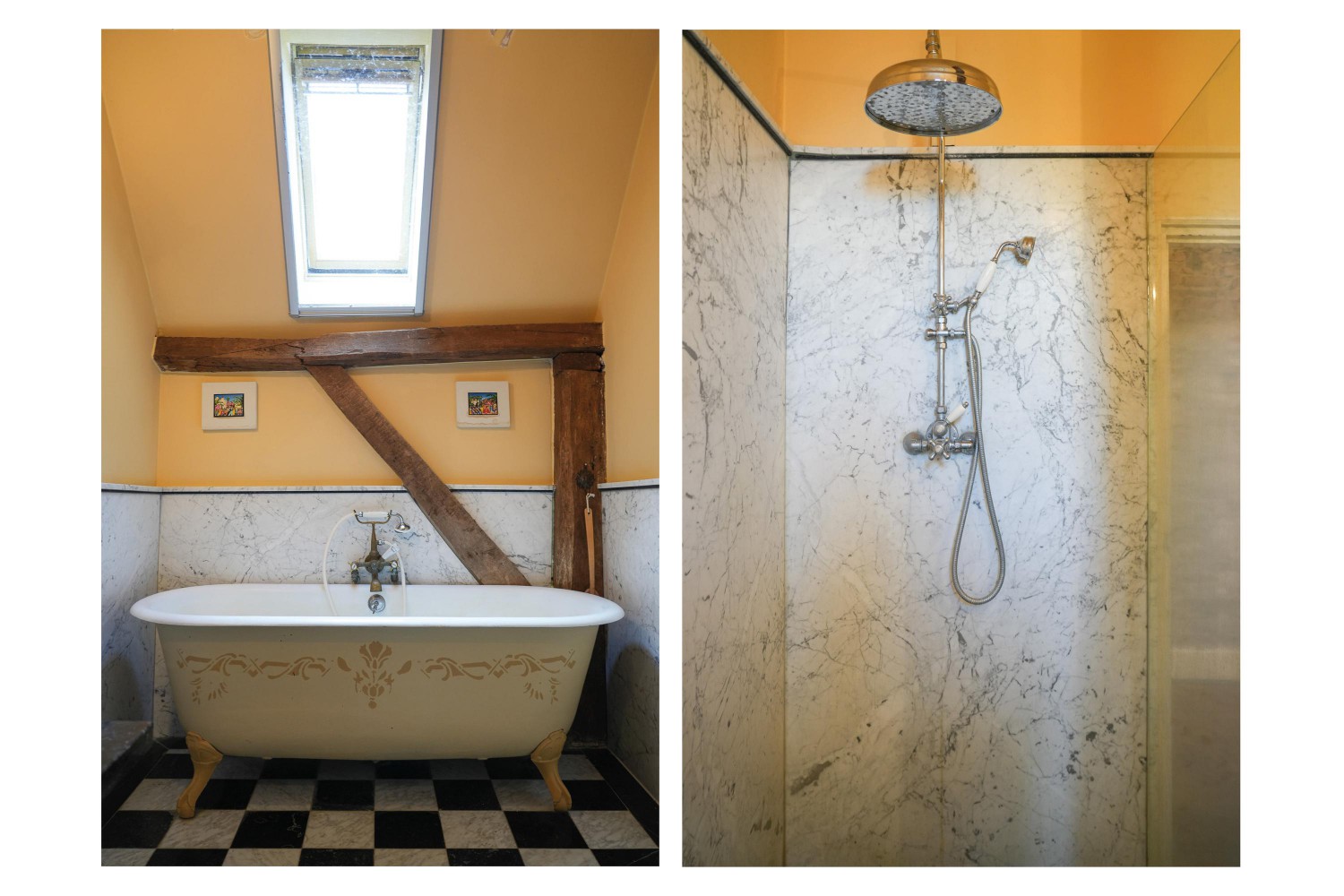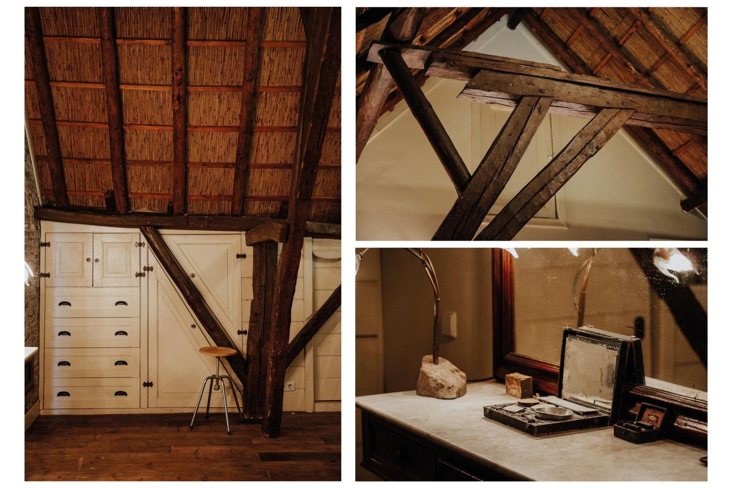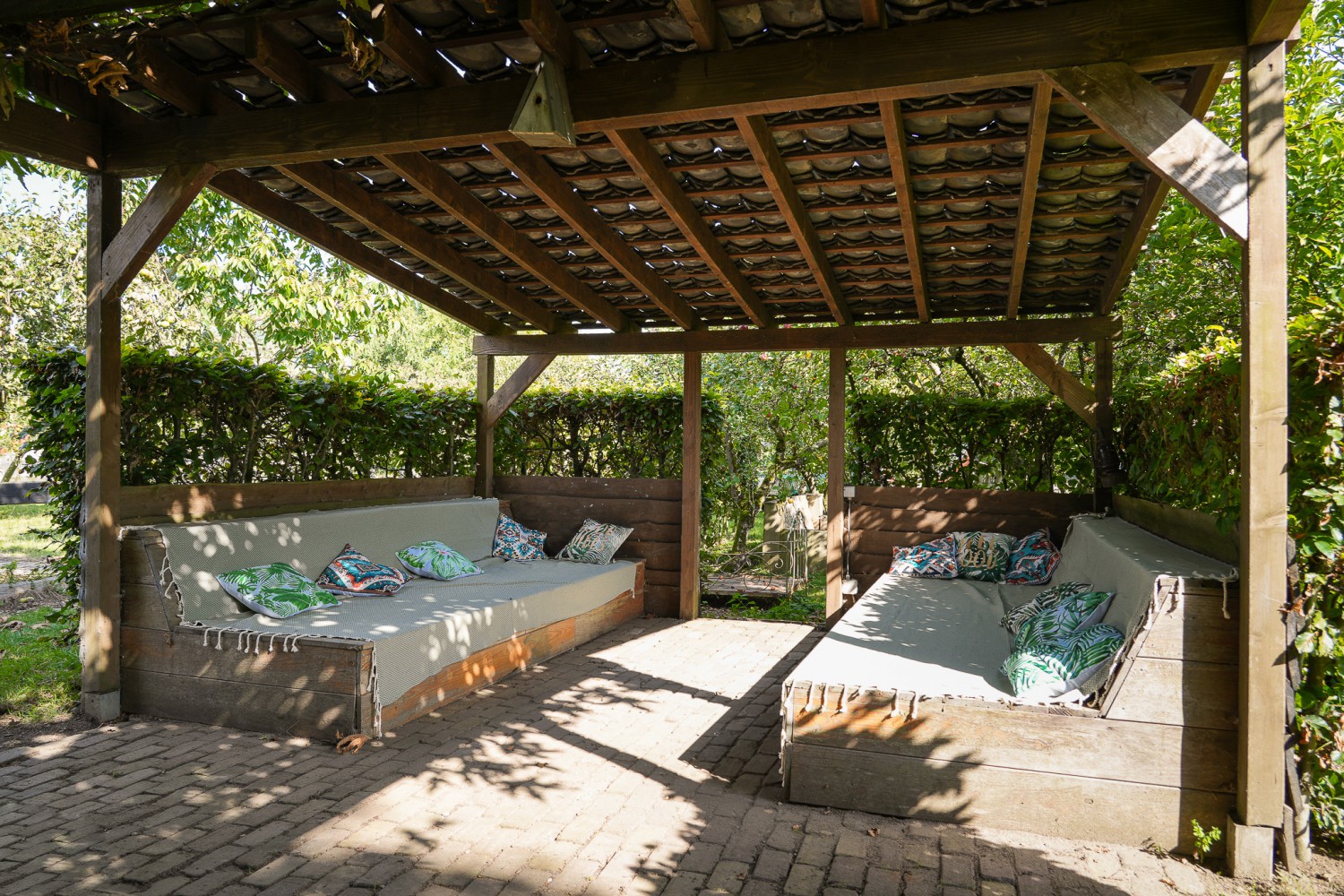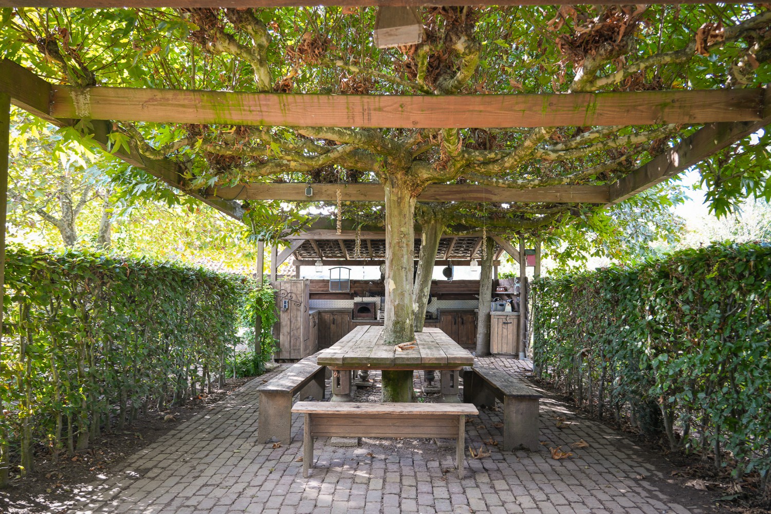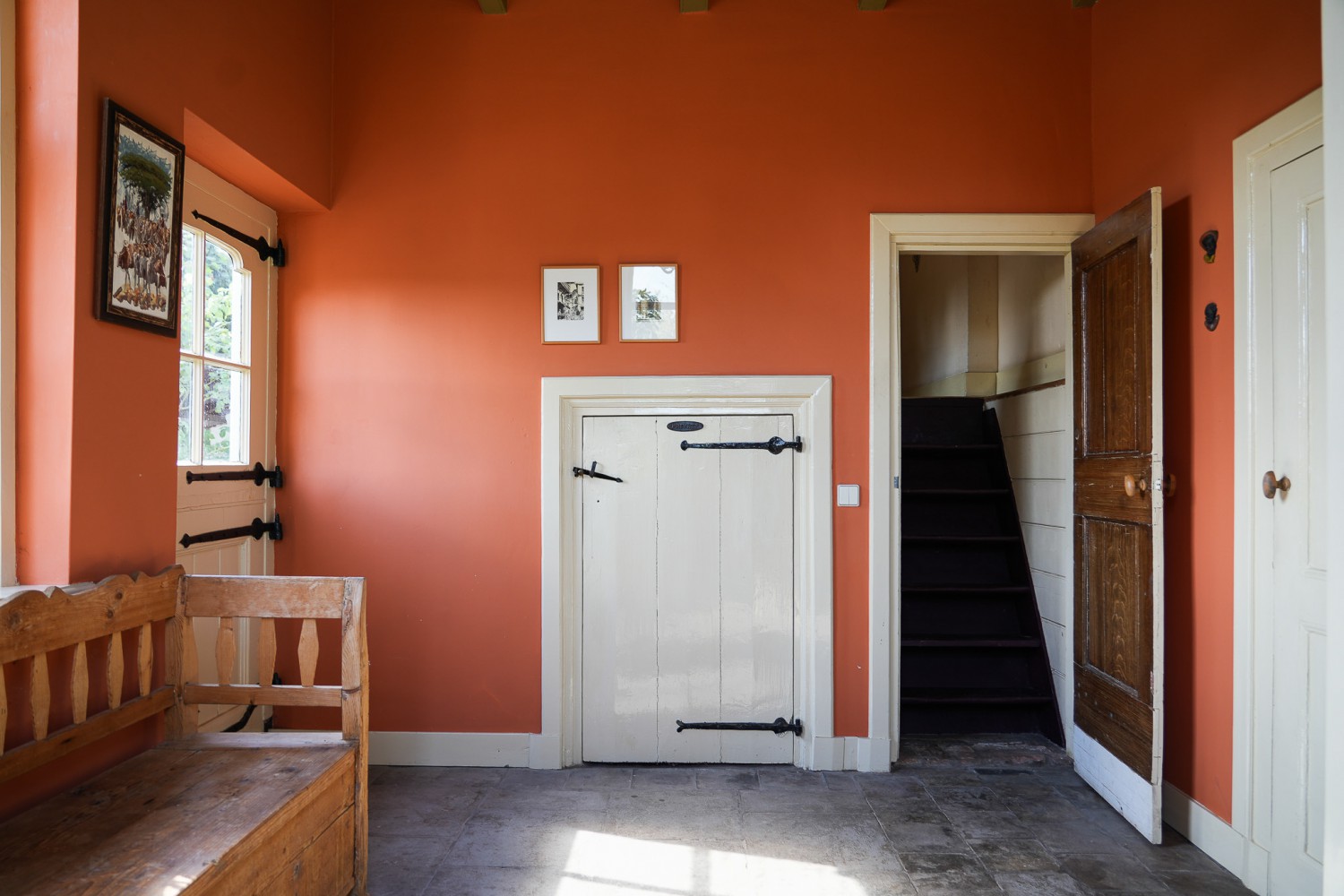 Als een warme deken omhult het rieten dak deze hoeve uit de 17e eeuw. De witte gevel en de groene luiken maken het sprookjesachtige tafereel in de landelijke omgeving compleet. De fijne tuin met zwemvijver, grote kas en boomgaard dragen bij aan de natuurlijke uitstraling van dit rijksmonument. In het interieur zijn veel oude details prachtig verweven met hedendaags comfort. In de woonkeuken ademt de sfeer van weleer door de roodstenen varkenstrog en hardstenen pompbak die in gebruik zijn als spoelbak. De zitvensterbanken verleiden tot gezellig chillen in de woonkeuken. De living is ruim en intiem. De zichtbare gebinten harmoniseren fraai met de balken aan het plafond. De warmte van de met leem gestucte wanden en de zandstenen schouw met houthaard zijn een open uitnodiging om heerlijk te ontspannen. Direct achter de living is de binnendoorgang naar het grote bijgebouw gesitueerd. Gerieflijkheid kenmerkt ook de verdieping waar beide slaapkamers over een badkamer-en-suite beschikken. De ambiance van de royale slaapkamer aan de achterzijde met open nok en bekleding van sierriet is ronduit bijzonder.