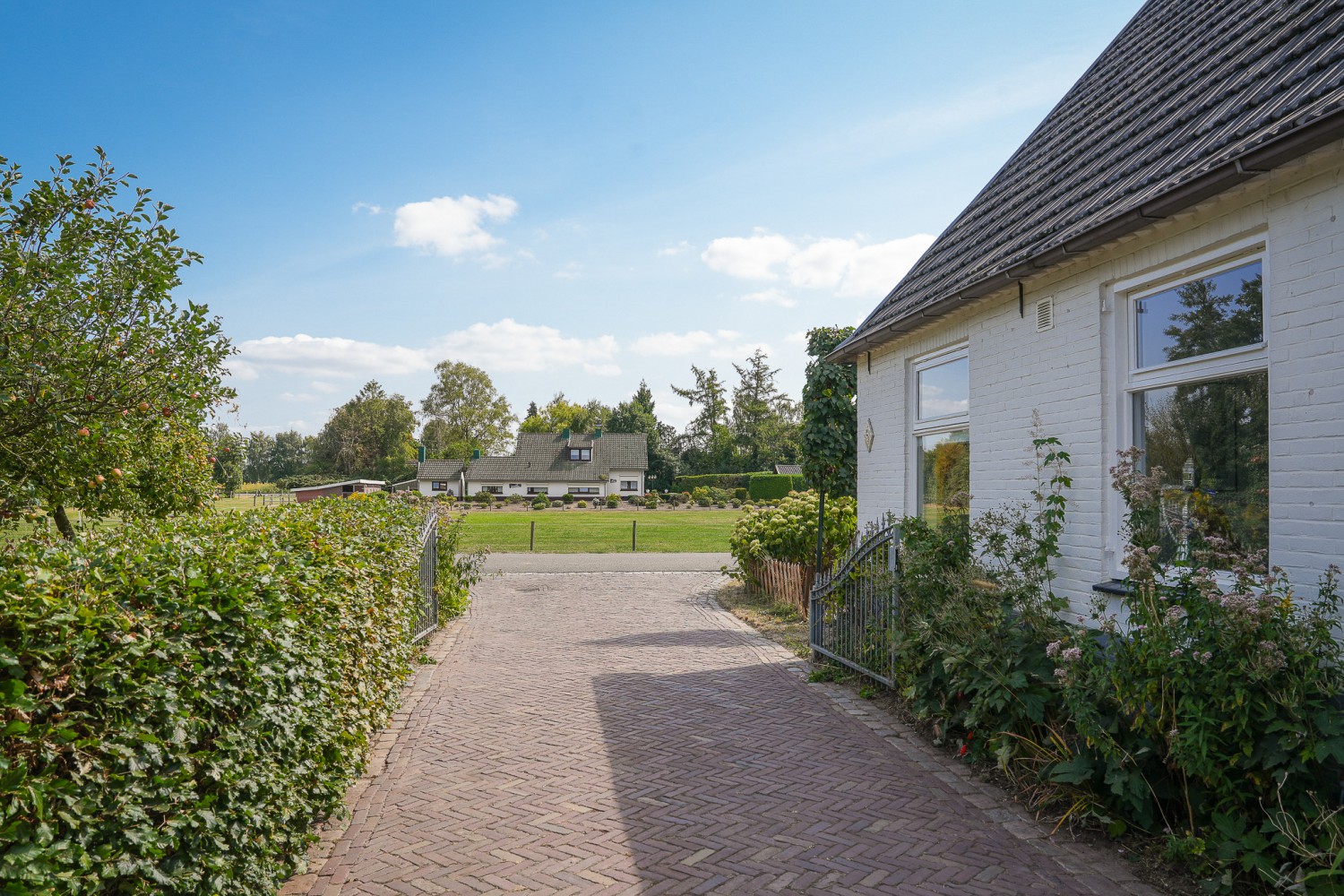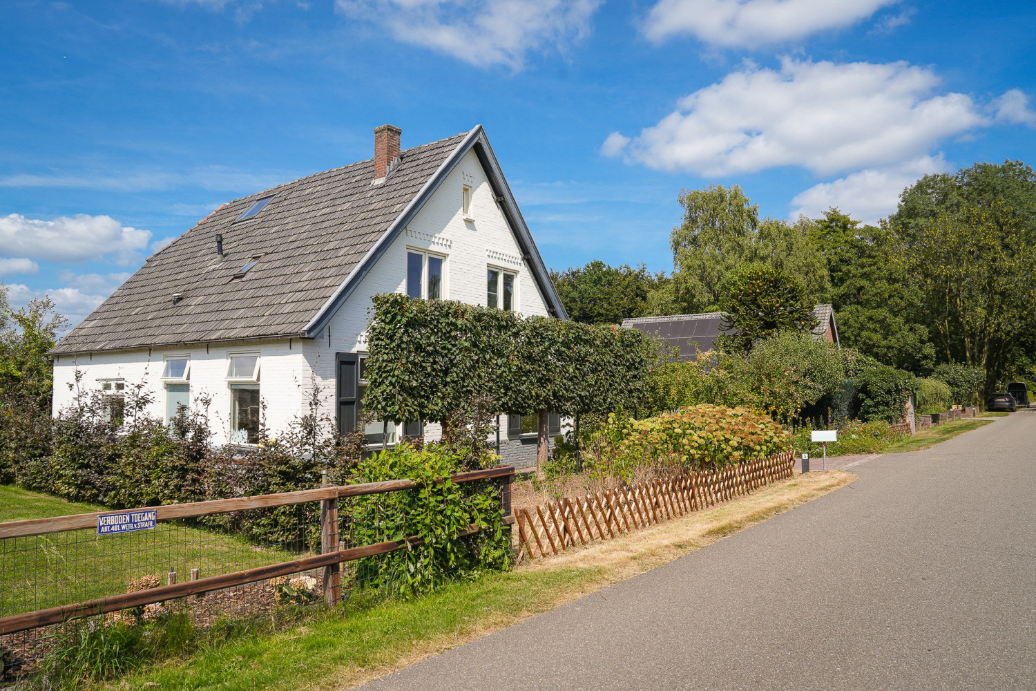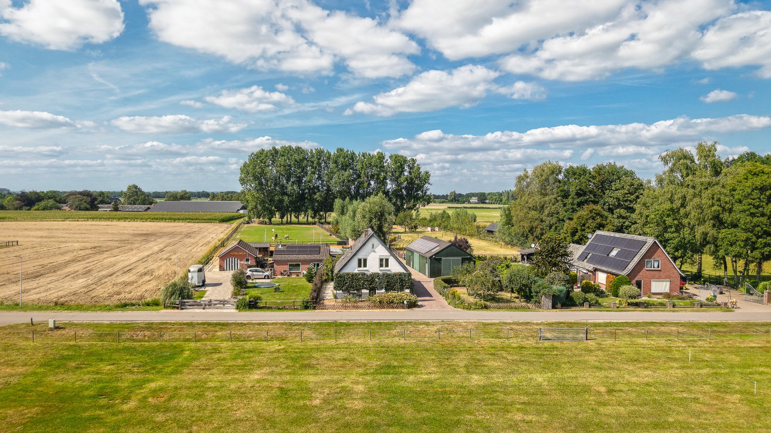 Feeëriek ligt deze woonboerderij uit 1933 in het rustige buitengebied van Didam. De witgeschilderde muren ogen fris in de groene omgeving. Als trouwe wachters vormen de leilindes aan de voorzijde een beschermende haag. Kom maar achterom fluistert de wind die zachtjes danst door het glansrijke buitenleven van deze hoeve. Paardenliefhebbers vinden hier een paardenstal met twee boxen, een paddock, paardenweide en een buitenbak. Op het achterterrein is een veranda met overkapping en vlondervloer. Een heerlijke plek om te barbecueën met familie en vrienden, vergezeld door de ondergaande zon. De naastgelegen, rijkelijk gevulde laagstamfruitboomgaard laat het bloed van tuiniers sneller stromen. Comfort en een fijne, geborgen sfeer kenmerken ook het interieur. Stijlvolle Portugese tegeltjes in de hal, een terracotta tegelvloer in de leefvertrekken en een Moso Bamboo houten vloer in de aangebouwde eetkamer. Een vertrek waar het buitenleven overvloedig binnenvalt door de grote raampartij. De fraaie, houtgestookte moederhaard in de woonkamer zorgt ook voor lage stookkosten, omdat hij is aangesloten op het cv-systeem. En niet te vergeten de hoogwaardige inbouwapparatuur van de keuken waarmee u lekker kunt koken. Met twee werk- of slaapkamers op de begane grond, drie royale slaapkamers op de verdieping en een riante vliering is er volop ruimte voor het hele gezin. Kortom een woning om mooie herinneringen te maken en te oogsten. Zo voegt ook u een stukje historie toe aan deze boerderij waar in de Tweede Wereldoorlog maar liefst vier gezinnen woonden.