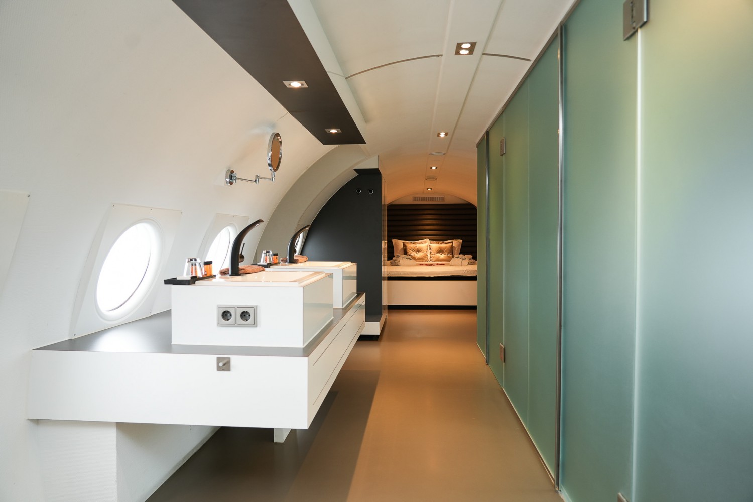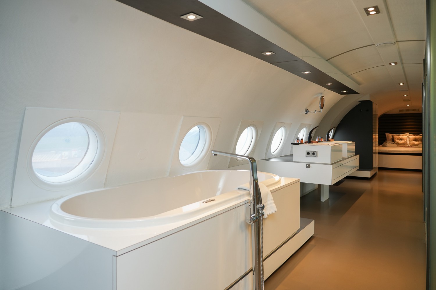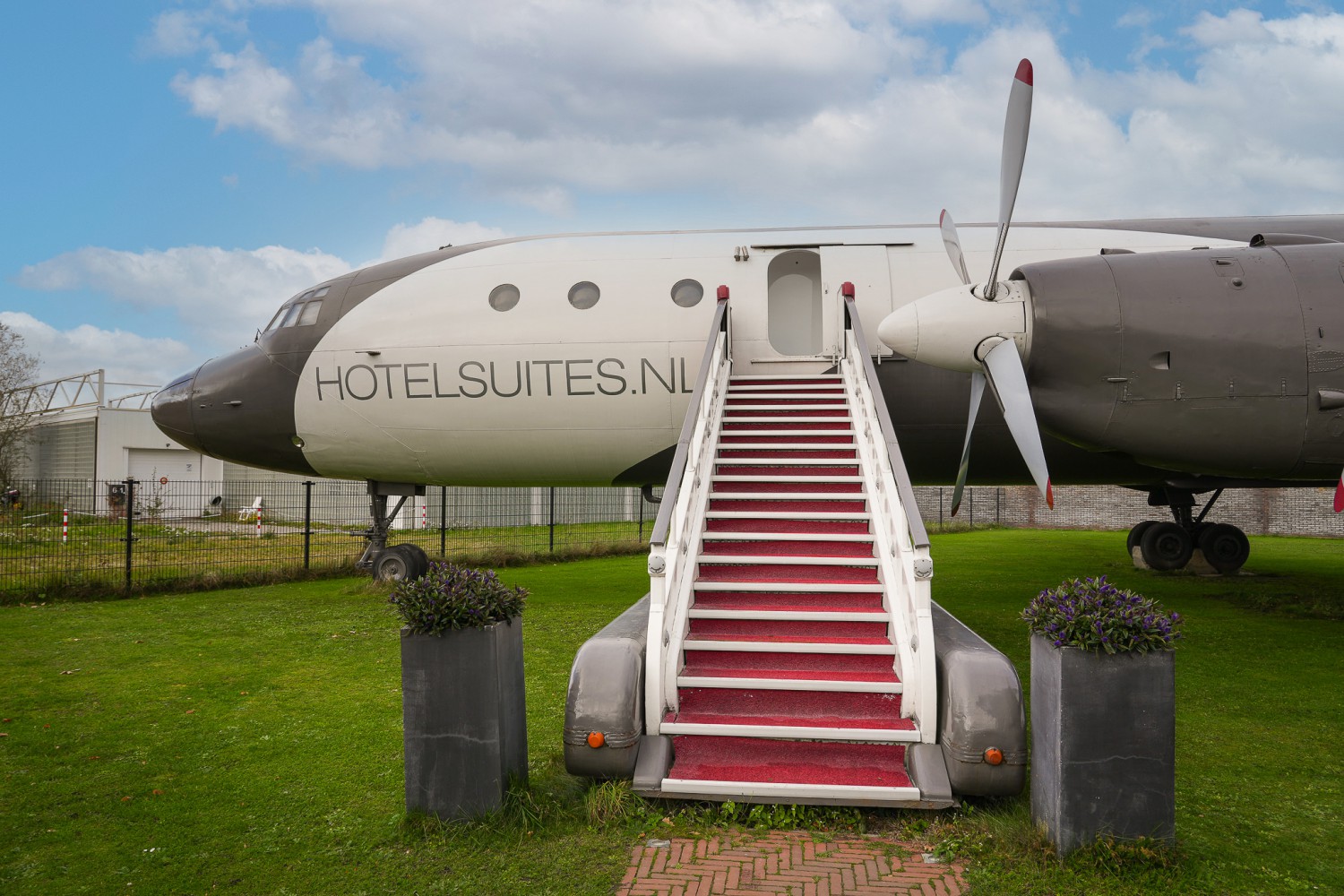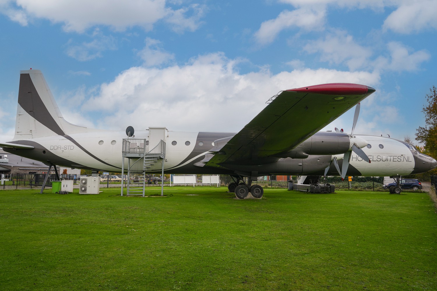 Met de koninklijke gratie van een krachtige roofvogel pronkt dit voormalige Oost-Duitse regeringstoestel op Teuge International Airport. Het toestel, een Ilyushin Il-18, werd gebouwd in 1960. Jarenlang doorkruiste het vliegtuig het luchtruim naar Cuba, Rusland en Vietnam om passagiers van de vroegere staatsluchtvaartmaatschappij Interflug te vervoeren. Daarna volgde een periode als restaurant in Duitsland. In 2009 belandde het vliegtuig in Nederland. Het werd omgebouwd tot een luxe suite voor een van de meest bijzondere hotelervaringen van Nederland. Inmiddels hebben al duizenden mensen een magische ‘slaapreis in de wolken’ beleefd. De hotelsuite heeft de afgelopen tien jaar een bezettingsgraad van 85 procent en is sinds 2021 ook een officiële trouwlocatie. Het is zelfs uitgeroepen tot ‘Beste Hotel van Nederland - Zoover Award Gold’, ‘Mooiste hotelkamer van Nederland’ en won de ‘Badkamer Design Award’. De gastenwaarderingen zijn bovengemiddeld hoog: 9,8 op Booking.com en 4,9 op Tripadvisor. Jan des Bouvrie, die destijds de officiële opening verrichtte, prees de zeldzame combinatie van historie en design. De originele cockpit is een ultieme dromenvanger. De jacuzzi en de infrarood-sauna verhogen de wellness-beleving. Het hoge terras aan de achterzijde biedt een first-class zicht op de dynamiek van landende sportvliegtuigen en parachutisten die het luchtruim gaan verkennen.