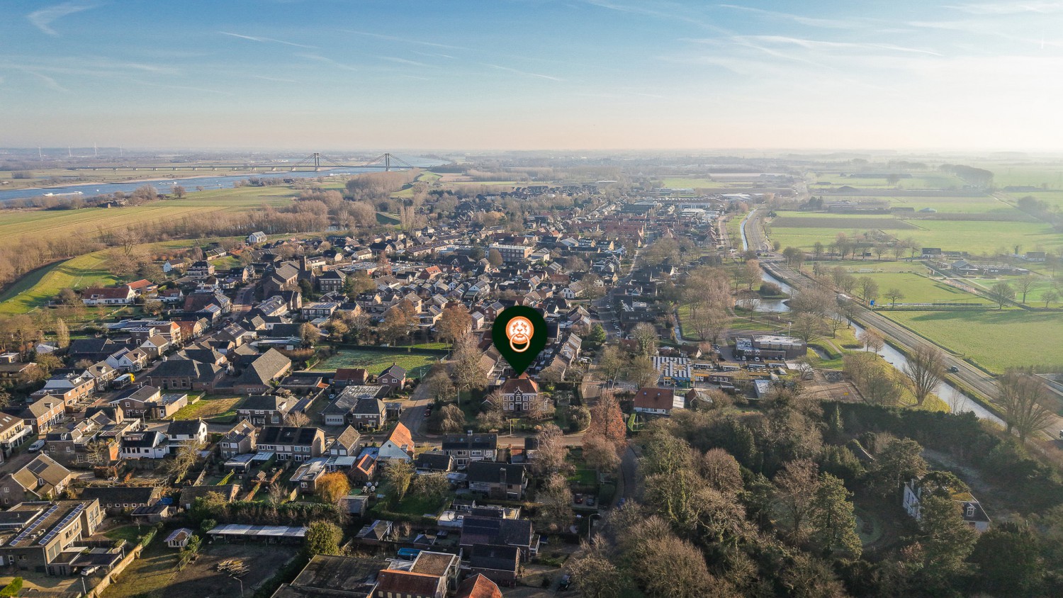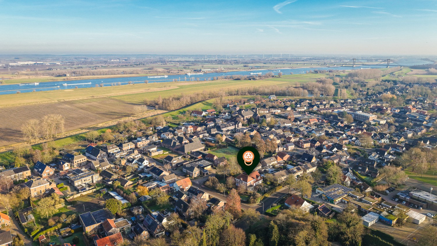 De woning ligt aan een rustige straat met de Waal en de uiterwaarden in de spreekwoordelijke achtertuin. De basisschool en de buurtsuper bevinden zich op loopafstand. Tiel, Nijmegen en Den Bosch zijn met 15 tot 30 autominuten bereikbaar. Het naastgelegen Beneden-Leeuwen ligt op vijf fietsminuten, daarnaast is Tiel via een voetveer binnen drie kilometer fietsafstand bereikbaar.