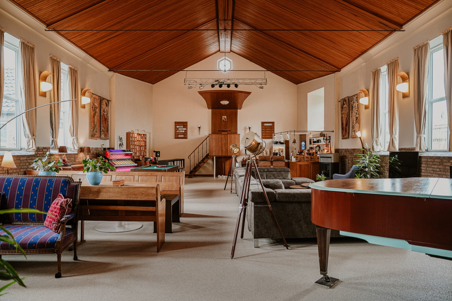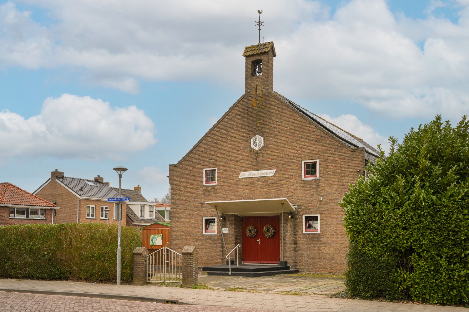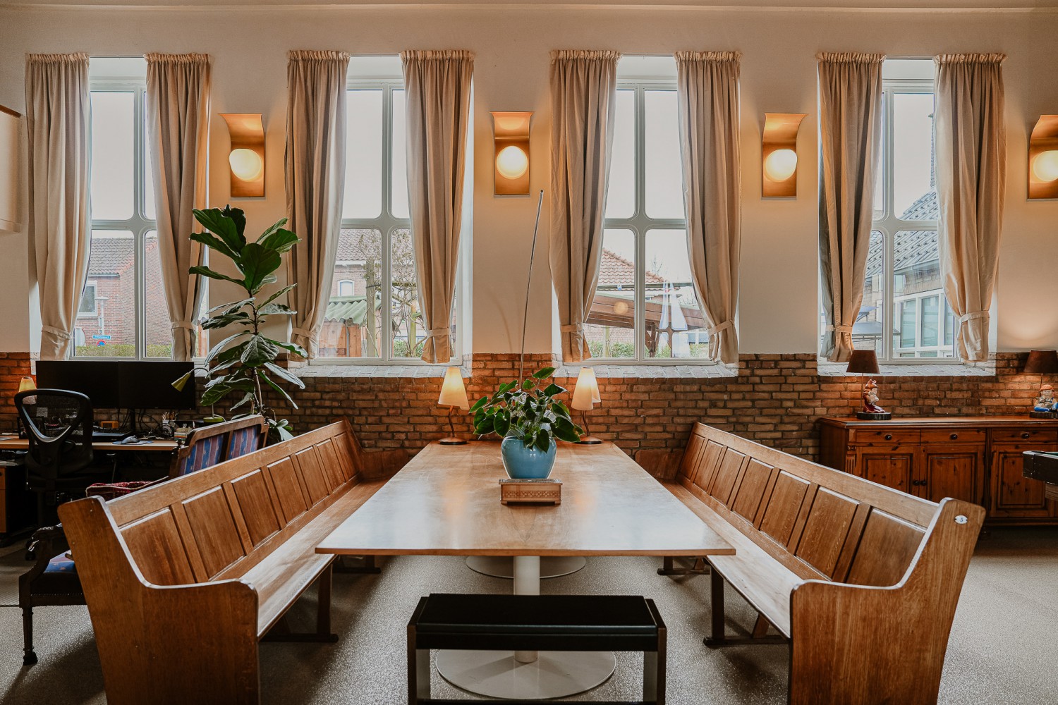 De kloeke toren van het voormalige kerkgebouw De Hoekpoort markeert de woning als een veilige baken. De kerkzaal, thans een multifunctionele living van circa 130 m², ademt een serene sfeer. Authentieke elementen zoals de kansel, de psalmborden en de wandlampen geven het interieur een unieke twist. Het houten plafond met een nokhoogte van ruim 6 meter zorgt voor geborgenheid. De hoge ramen onderstrepen de zee aan ruimte die deze woonkamer biedt. De gaanderij, vroeger de plek van het orgel, fungeert nu als balkon met fraai zicht op de kerkzaal. De voormalige christelijk gereformeerde kerk uit 1954 heeft na 2011 een woonbestemming gekregen. Het consistorie, momenteel in gebruik als studio, is ook in te richten als kantoor of slaapkamer. In het aangrenzende verenigingsgebouw uit 1990 zijn onder anderen een keuken, vier slaapkamers en een badkamer gesitueerd. De zijtuin, omgeven door een dikke haag, is een heerlijke plek om te genieten van de rust en het zicht op de bomen achter de tuin.