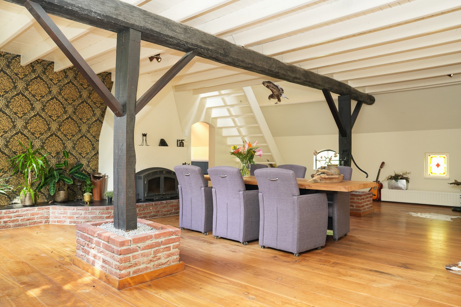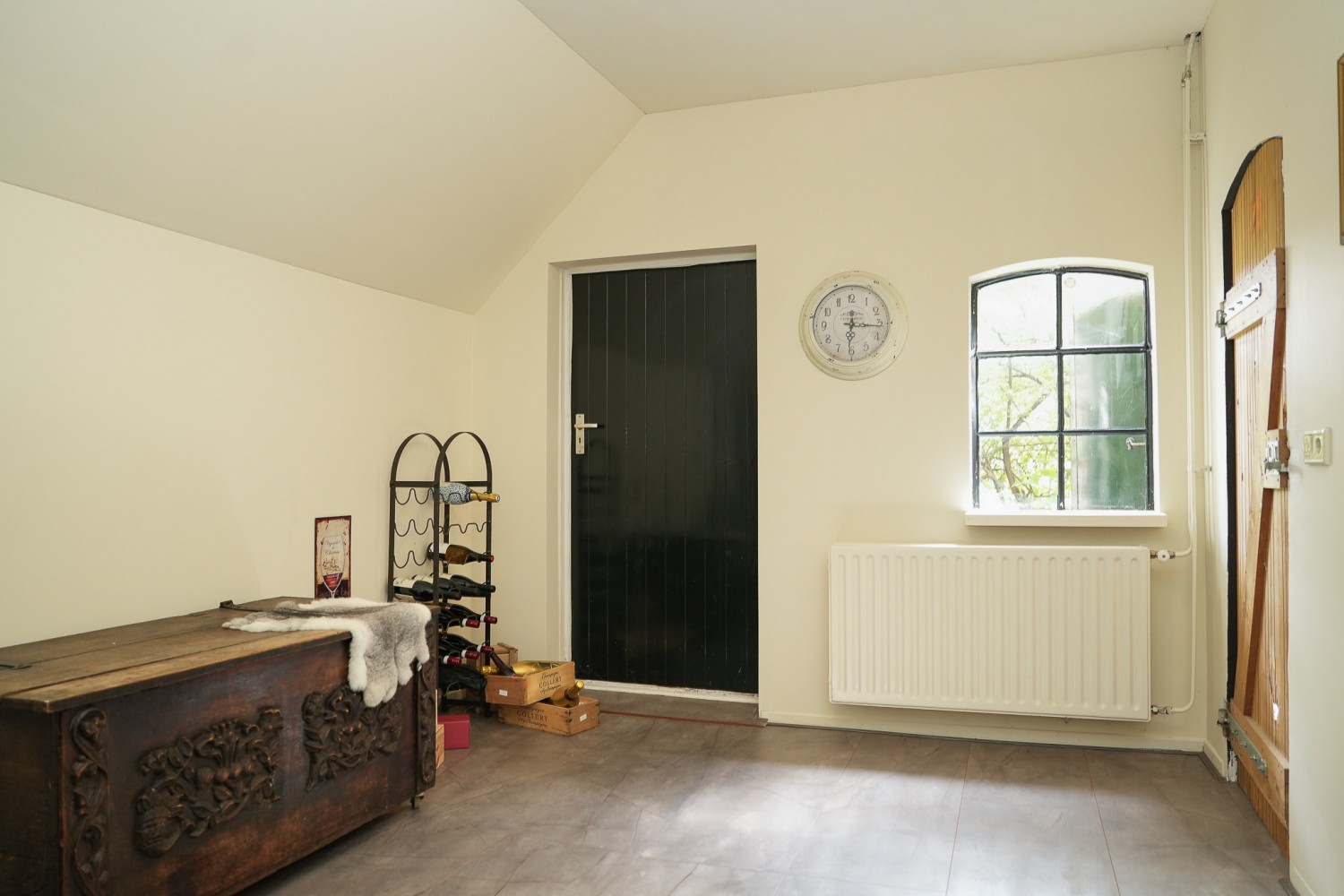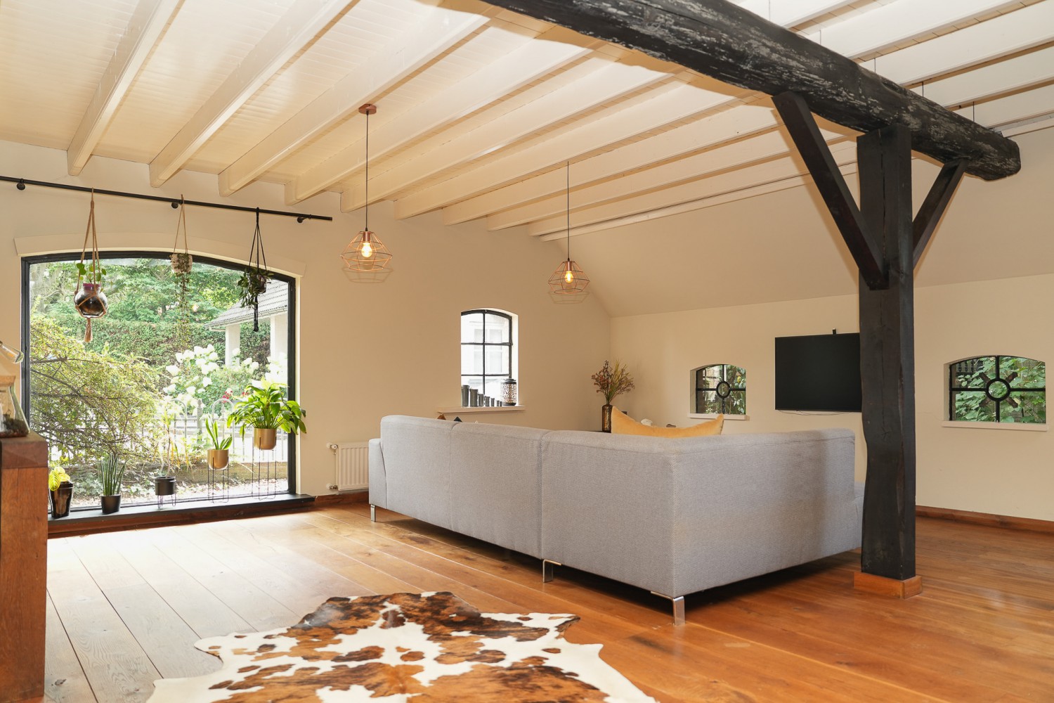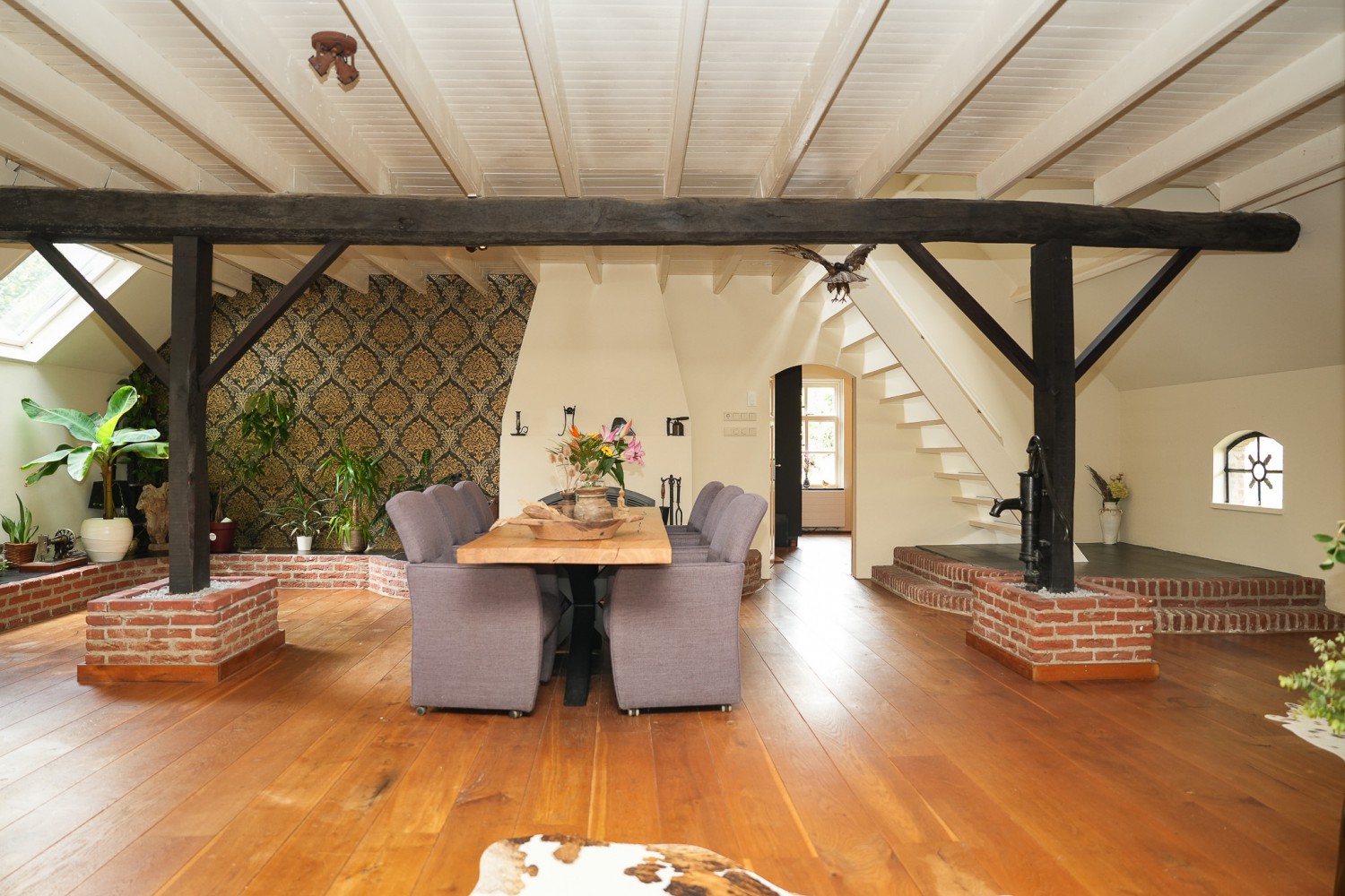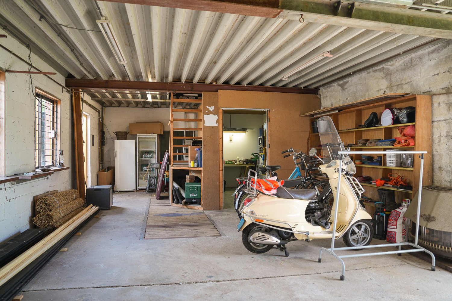 De royale schuur/garage heeft een brede oprit met extra parkeerplaats voor twee auto’s. De open ruimte met bergzolder biedt mogelijkheden tot het creëren van een kantoor-/praktijkruimte, mantelzorgwoning of B&B met eigen tuin.