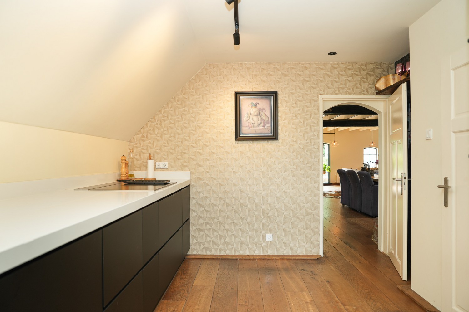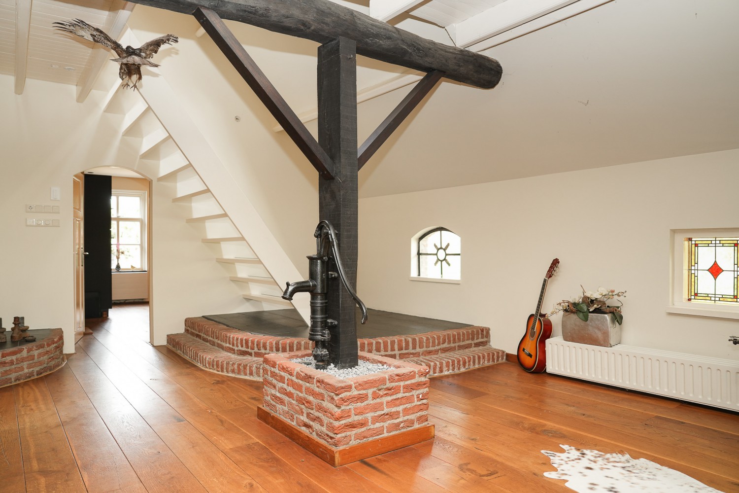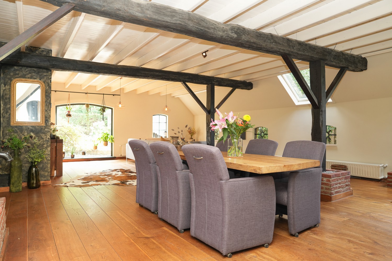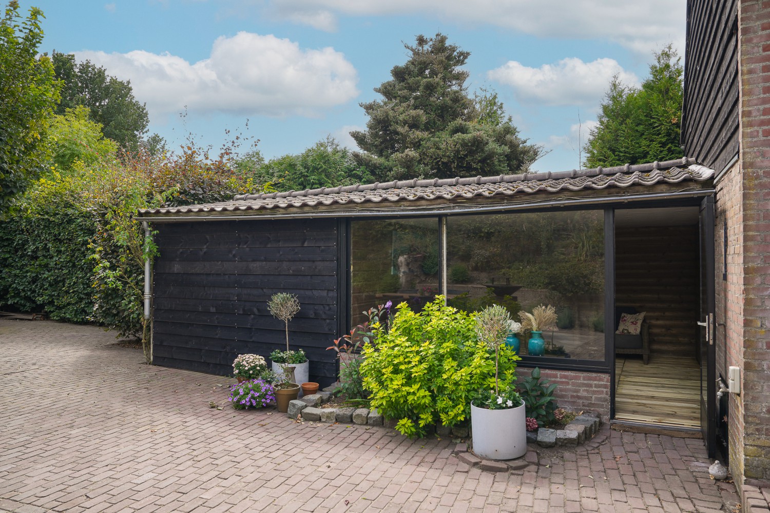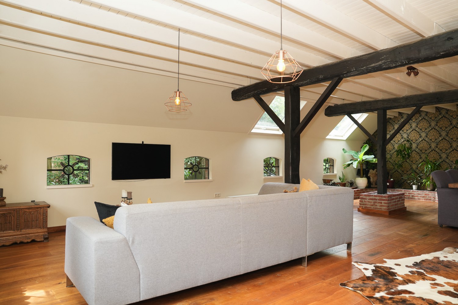De royale schuur/garage heeft een brede oprit met extra parkeerplaats voor twee auto’s. De open ruimte met bergzolder biedt mogelijkheden tot het creëren van een kantoor-/praktijkruimte, mantelzorgwoning of B&B met eigen tuin.