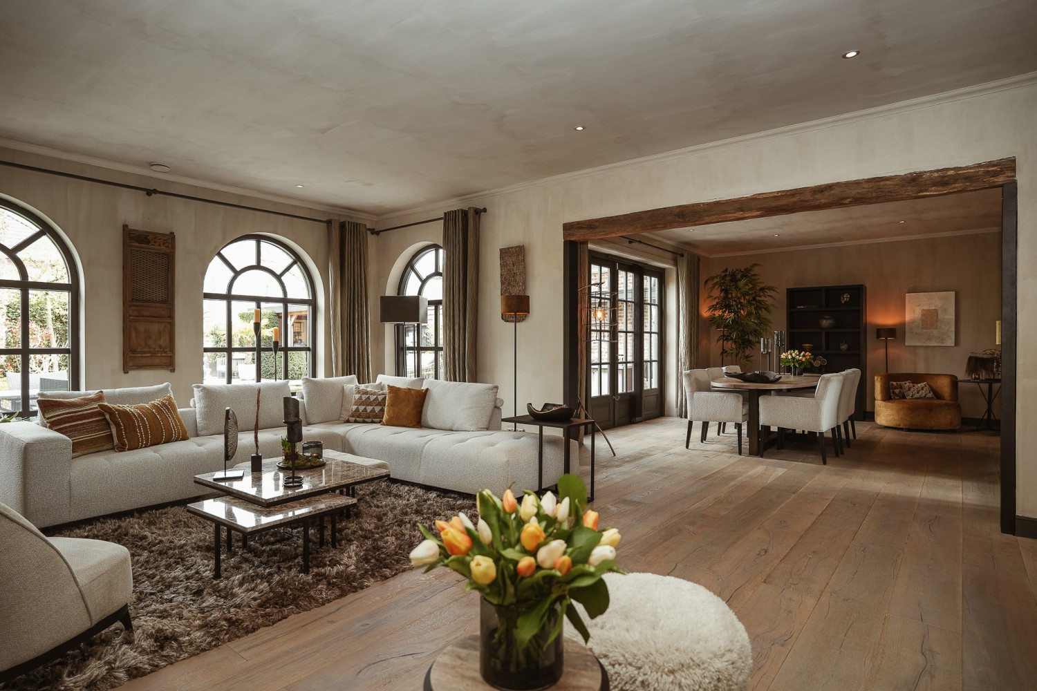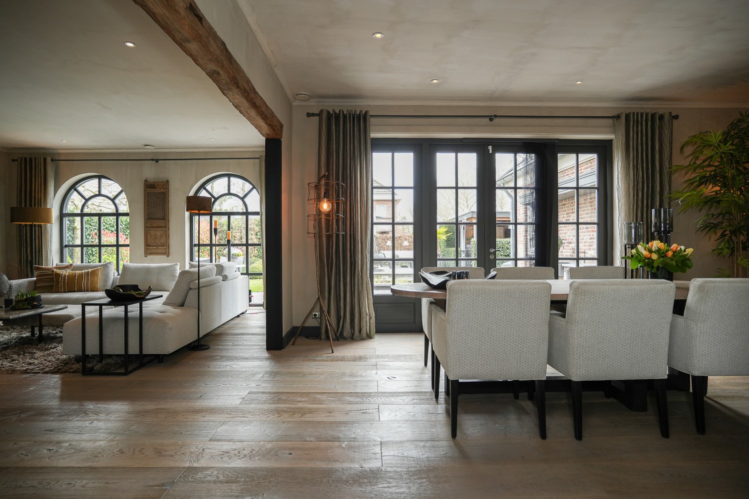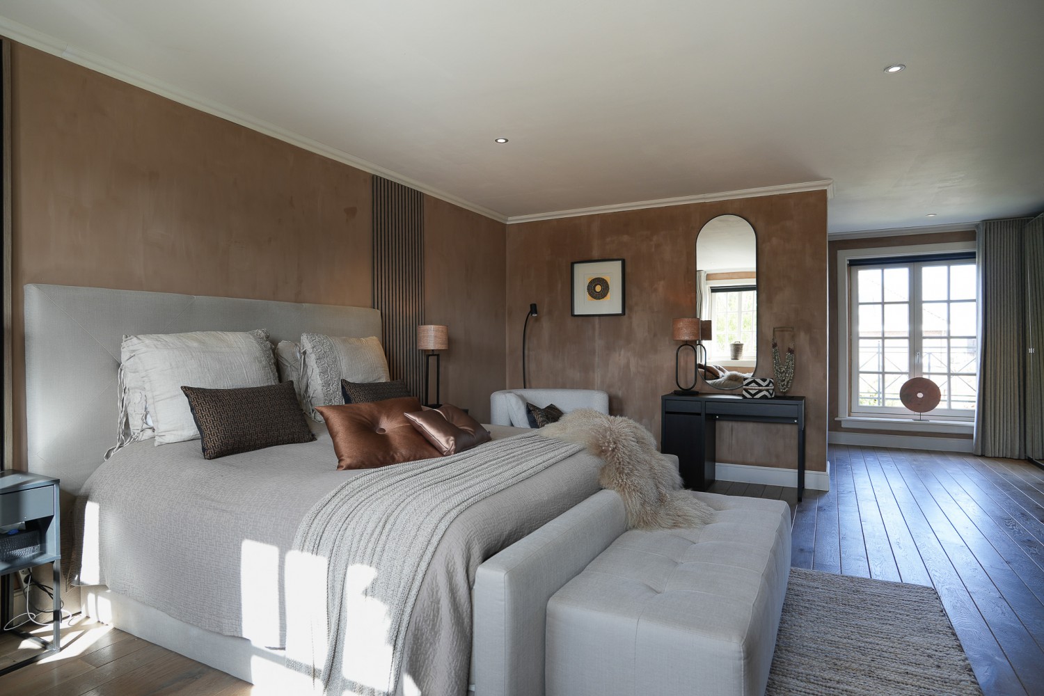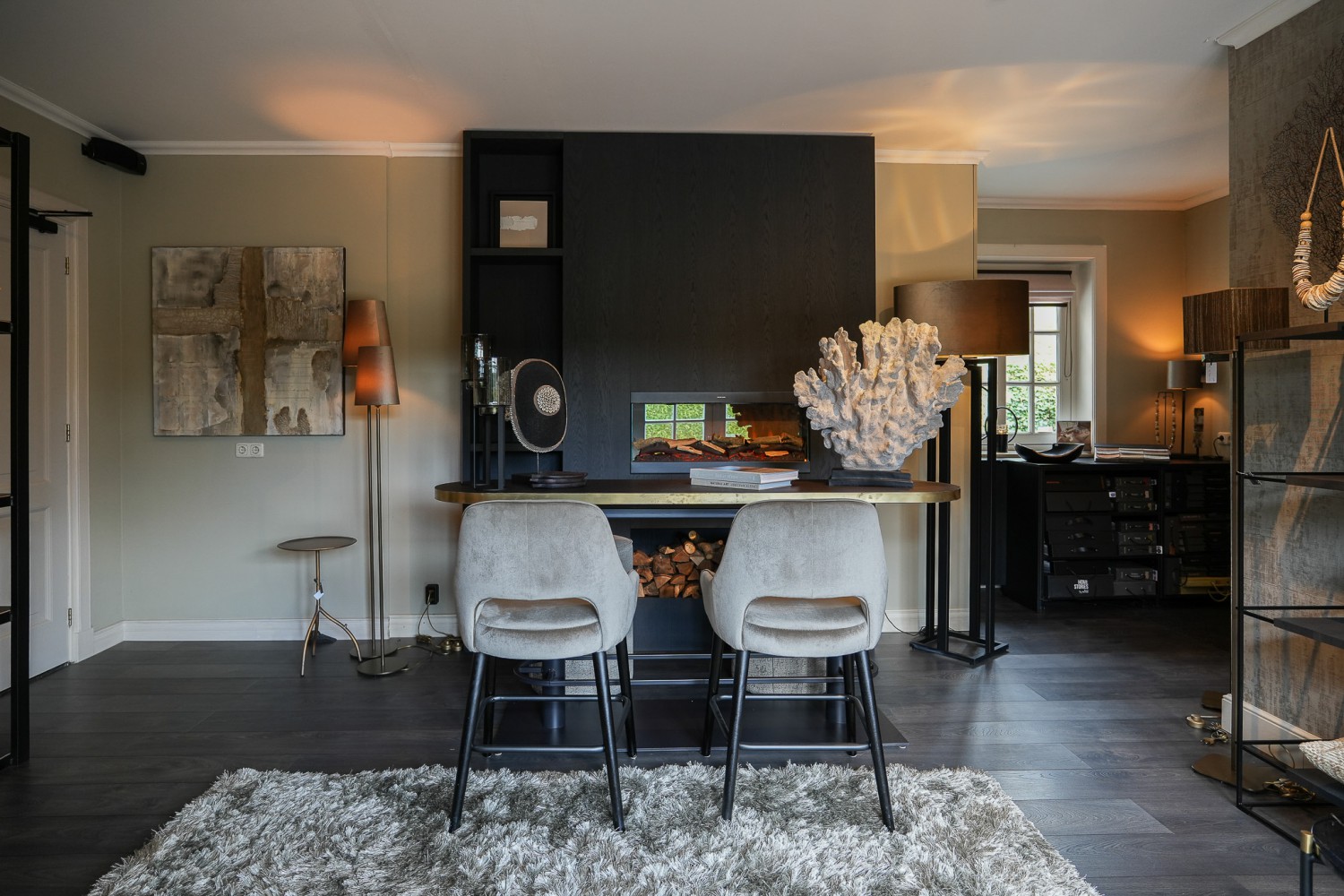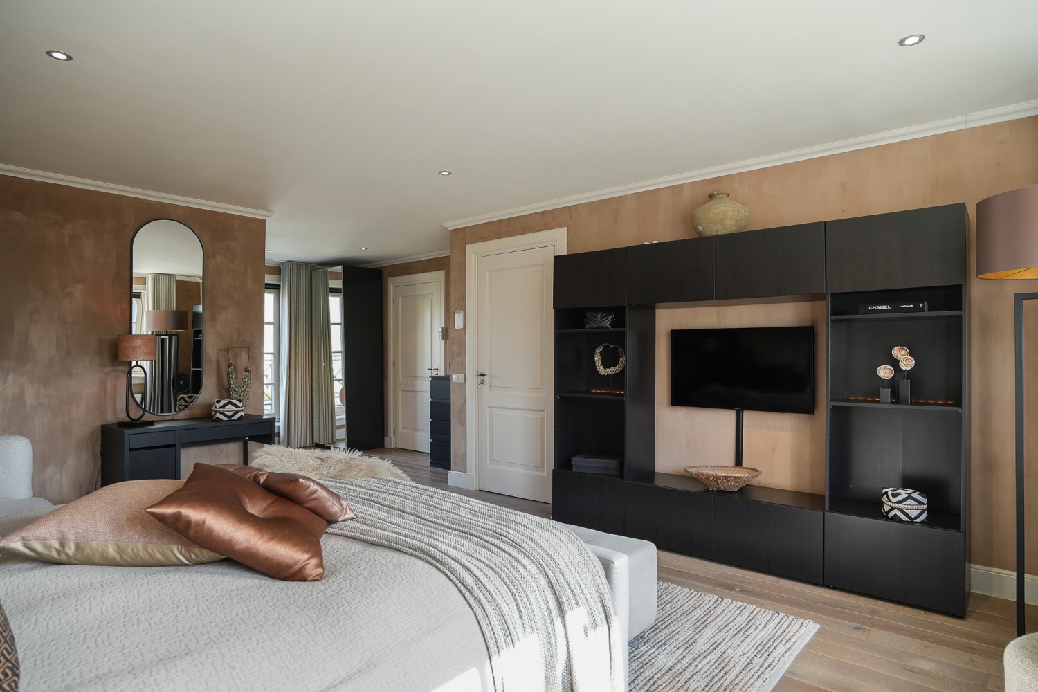 Binnen ervaart u een harmonie van licht en ruimte, waar authentieke details en eigentijds comfort elkaar versterken. De woonkamer met eiken vloerdelen en een zandstenen schouw met gashaard vormt het hart van het huis, terwijl toogramen aan de achterzijde het daglicht zacht binnenlaten. De eetkamer opent met grote deuren naar de tuin, wat het buitengevoel naar binnen brengt. De keuken is een stijlvolle plek met een hardstenen vloer, een eiland met eiken werkblad en hoogwaardige apparatuur. De master bedroom met inloopkast en luxe badkamer biedt een privé-oase met toegang tot een dakterras. Daarnaast is er een kantoorruimte met eigen entree, ideaal voor werk aan huis. Overal voelt u de zorgvuldige afwerking en het doordachte ontwerp dat het wonen hier bijzonder maakt.