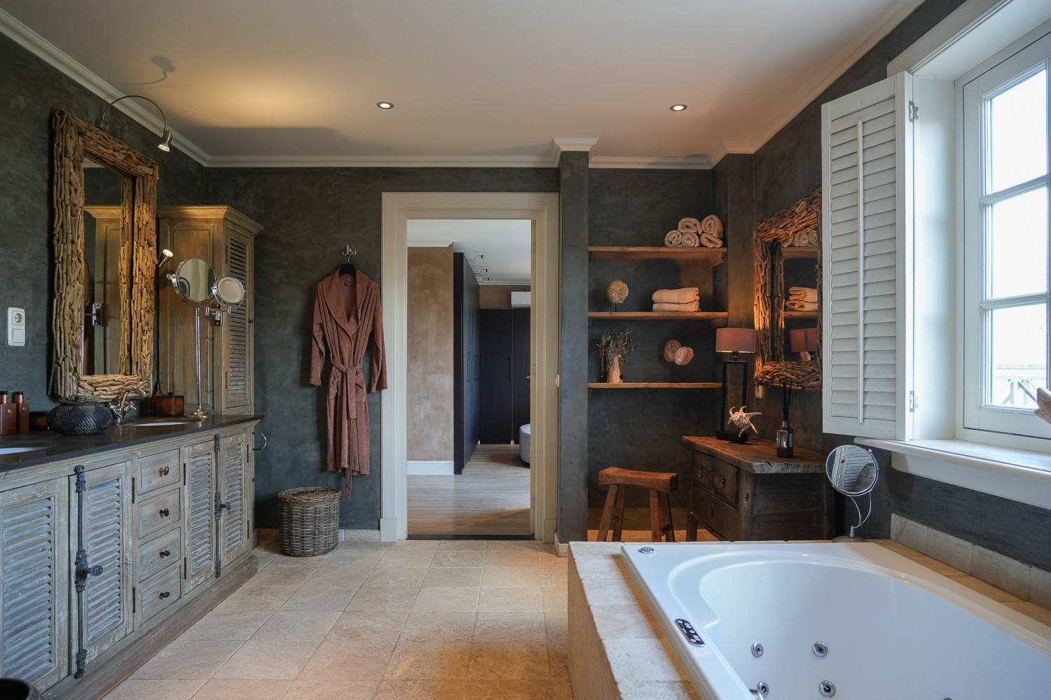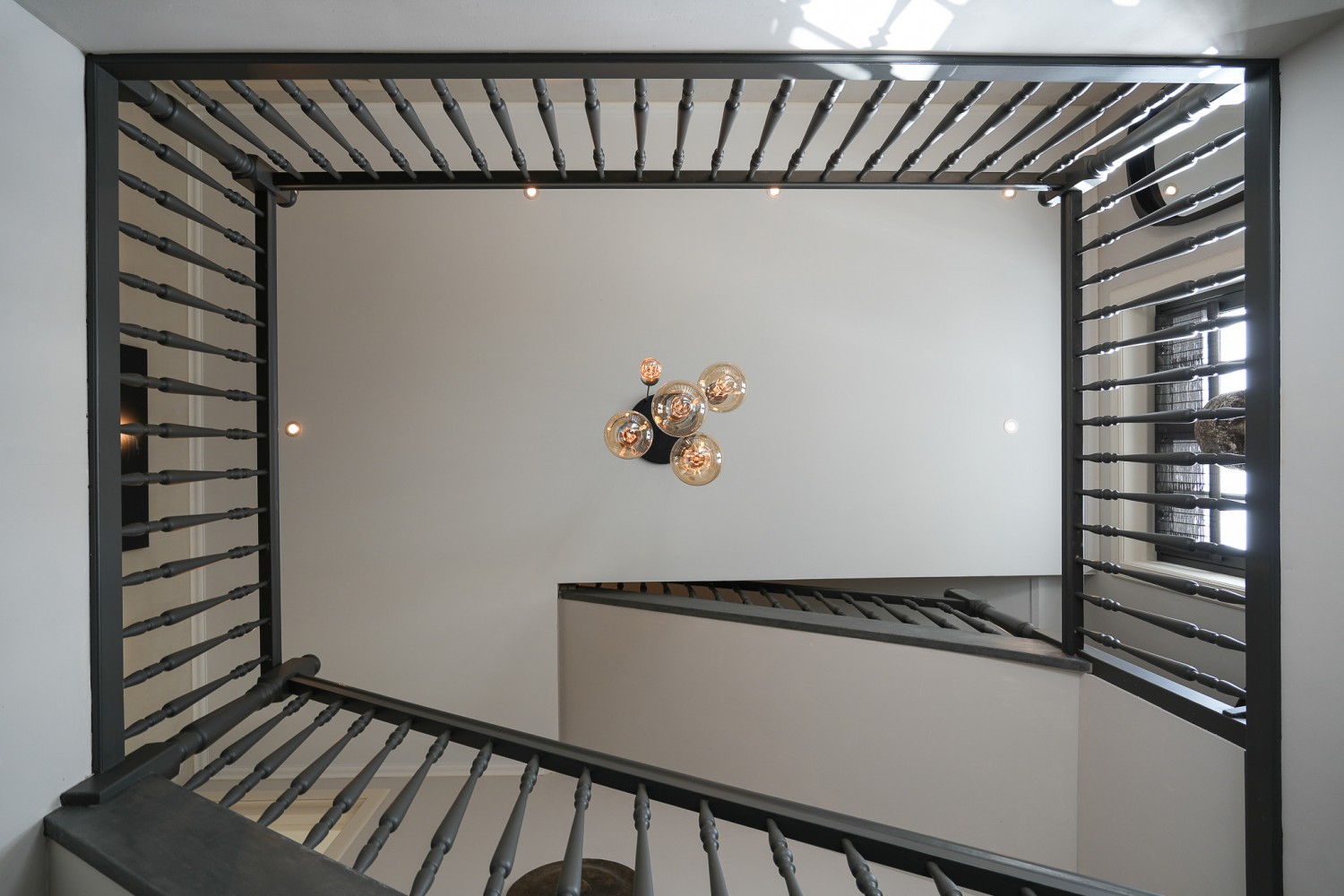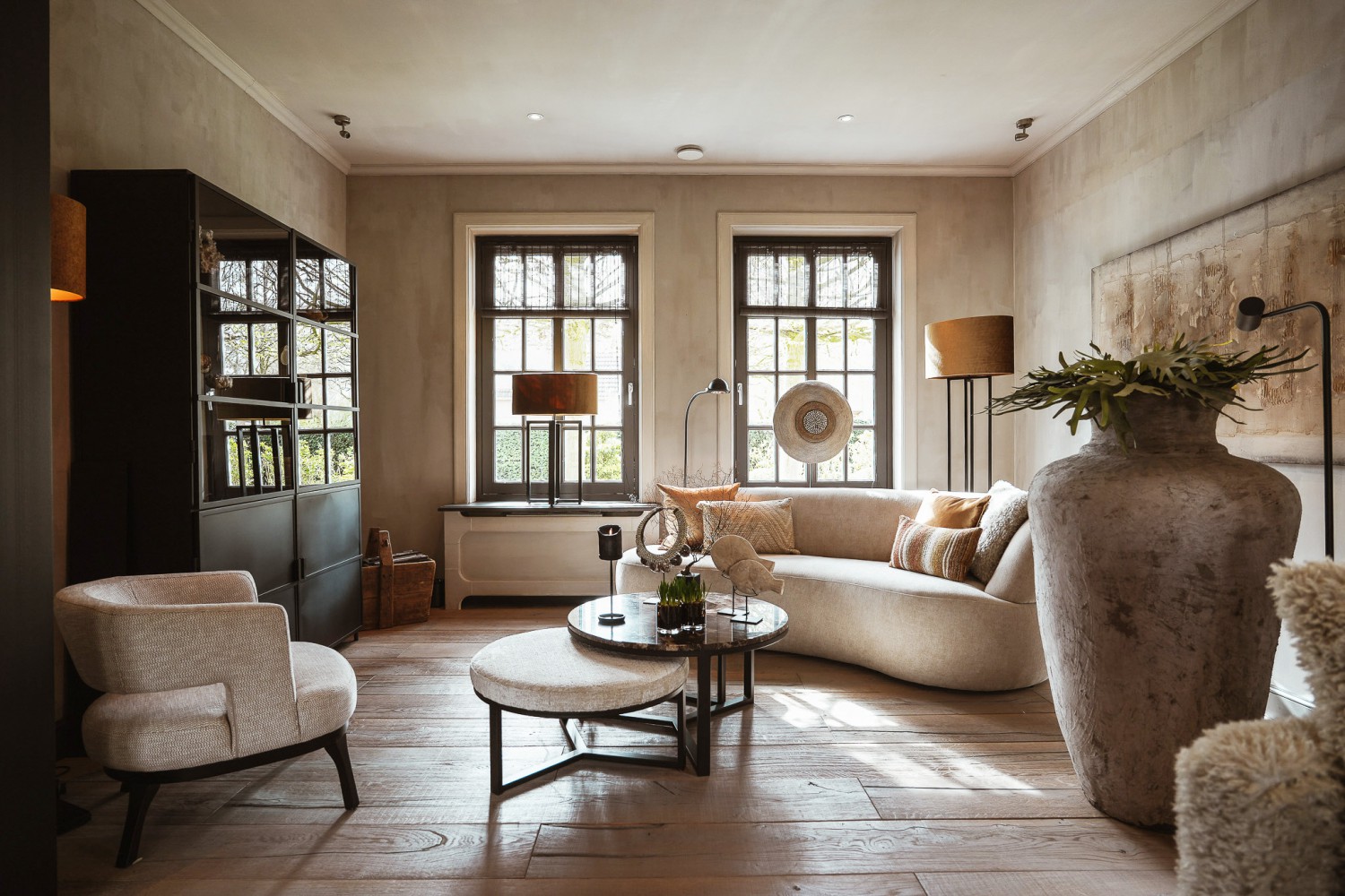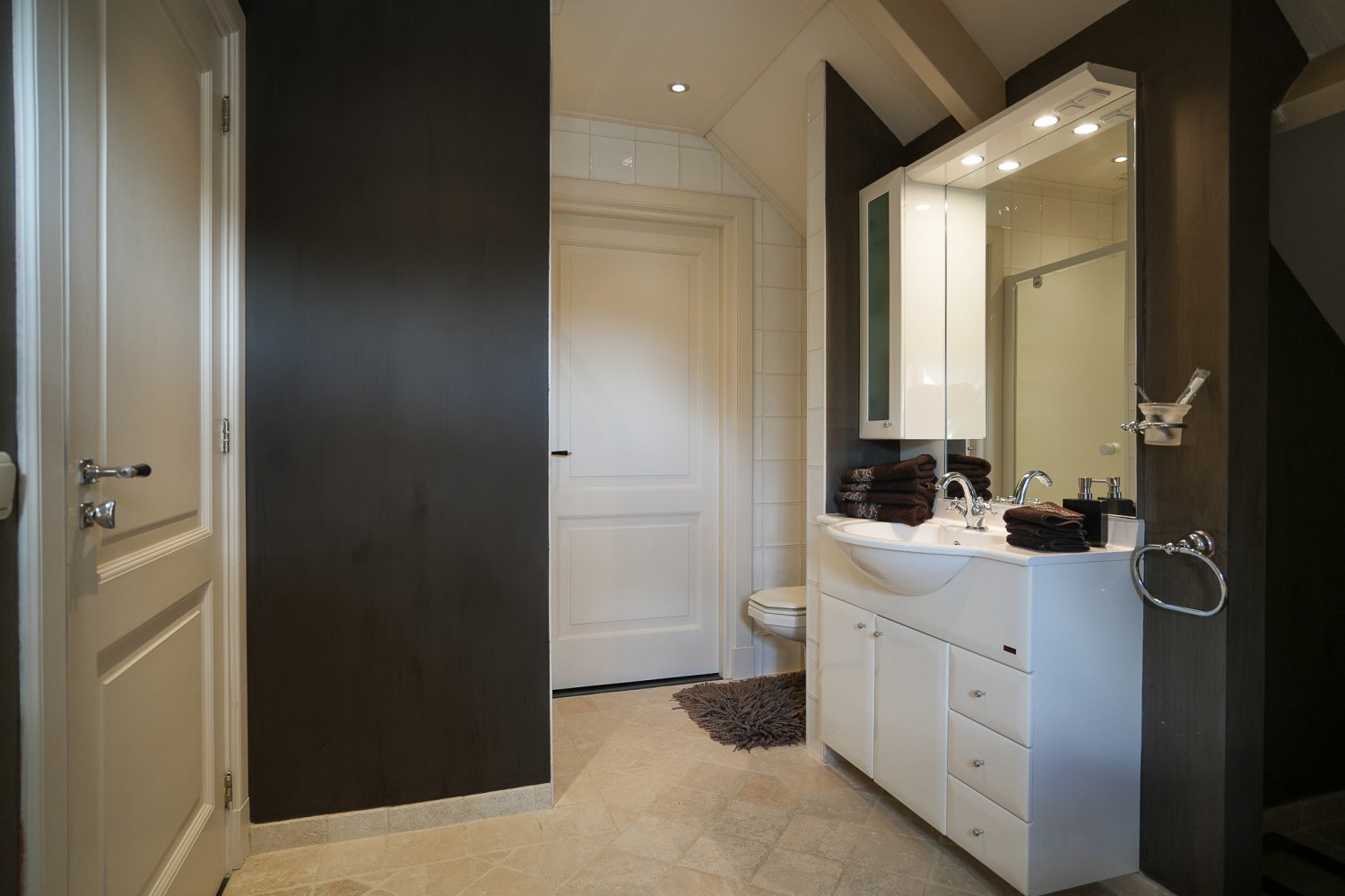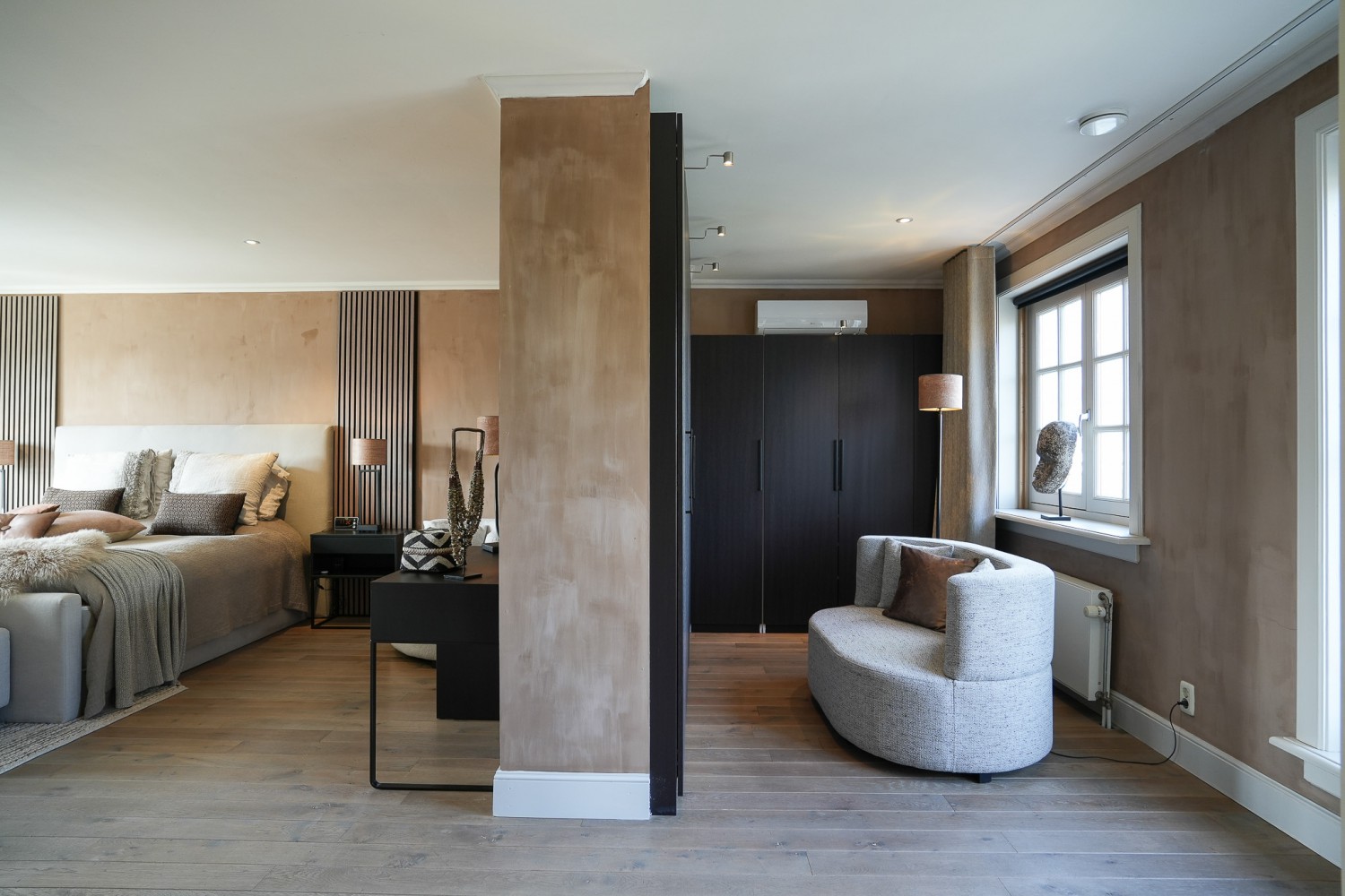 Binnen ervaart u een harmonie van licht en ruimte, waar authentieke details en eigentijds comfort elkaar versterken. De woonkamer met eiken vloerdelen en een zandstenen schouw met gashaard vormt het hart van het huis, terwijl toogramen aan de achterzijde het daglicht zacht binnenlaten. De eetkamer opent met grote deuren naar de tuin, wat het buitengevoel naar binnen brengt. De keuken is een stijlvolle plek met een hardstenen vloer, een eiland met eiken werkblad en hoogwaardige apparatuur. De master bedroom met inloopkast en luxe badkamer biedt een privé-oase met toegang tot een dakterras. Daarnaast is er een kantoorruimte met eigen entree, ideaal voor werk aan huis. Overal voelt u de zorgvuldige afwerking en het doordachte ontwerp dat het wonen hier bijzonder maakt.