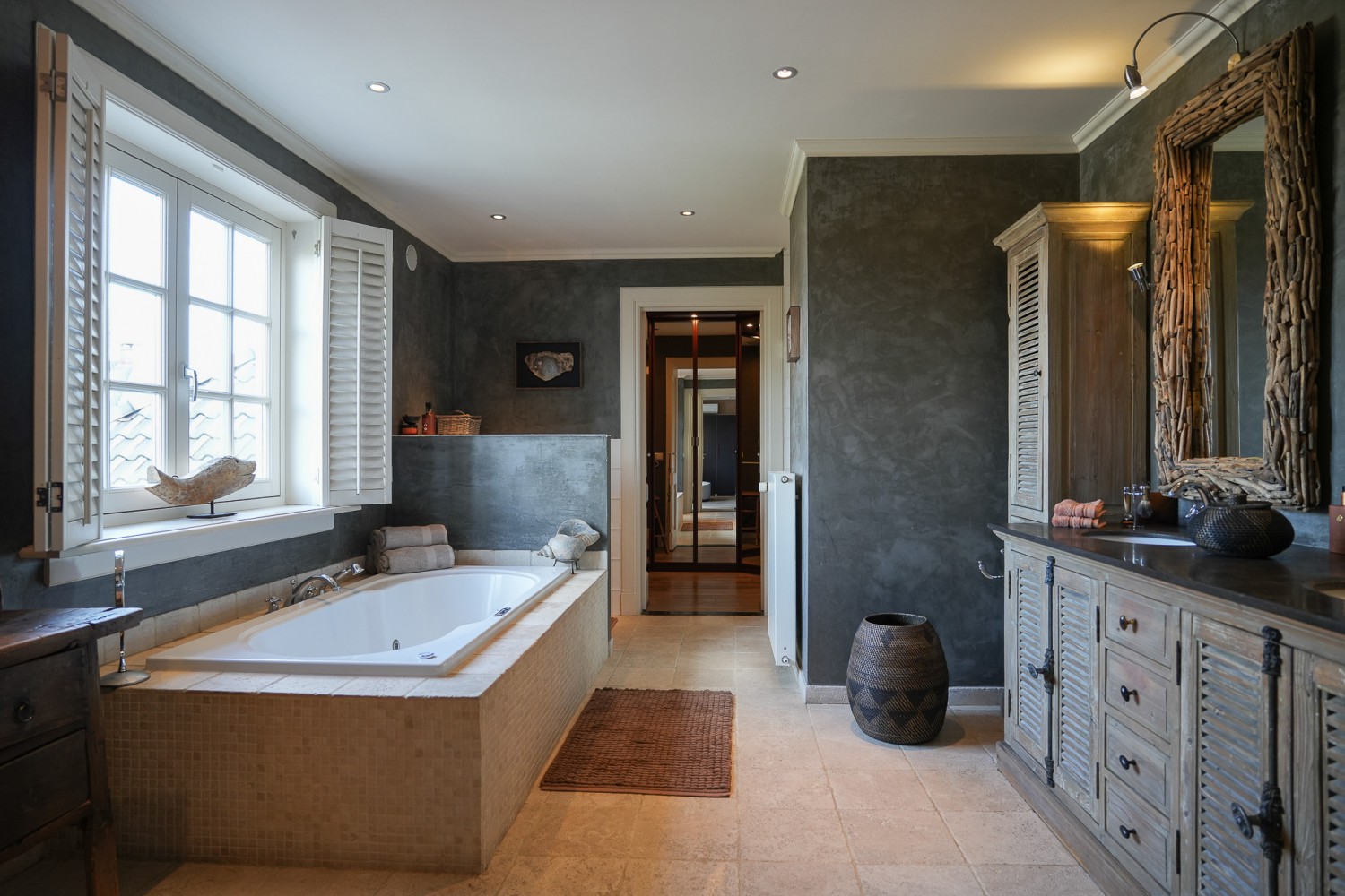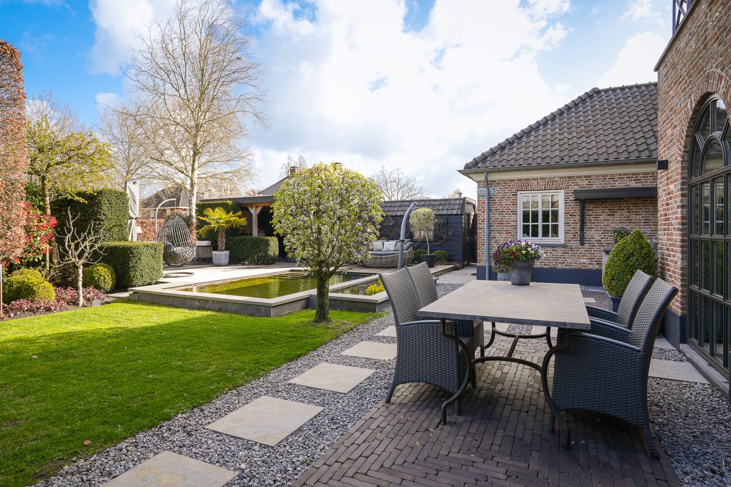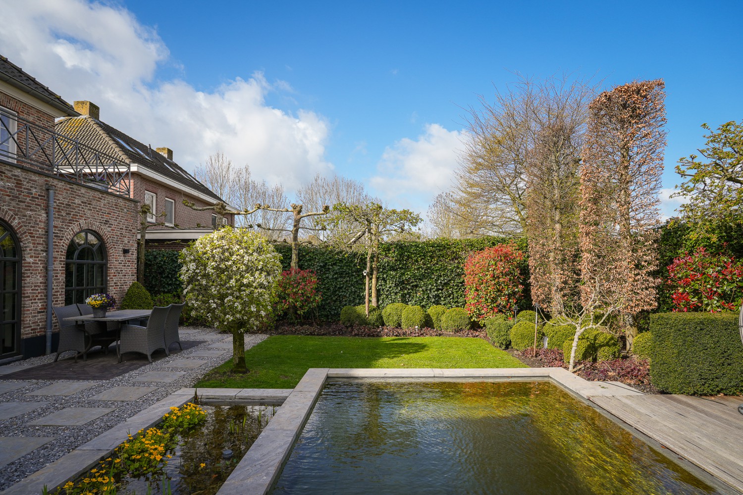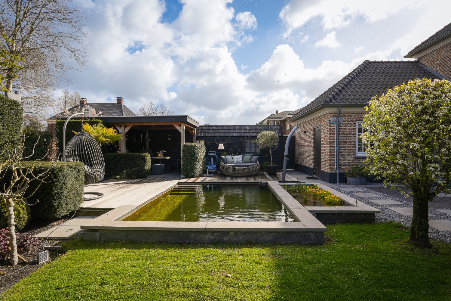 De tuin is een groene verlenging van het wooncomfort met een veranda, vlonderterras en een zwemvijver met buitendouche die uitnodigt tot ontspanning. De voortuin sluit naadloos aan bij de Kempische stijl van het huis met een poort en cobblestones. Aan de zijkant vindt u een carport en berging, plus parkeerplaatsen voor meerdere auto’s. De combinatie van een riante buitenruimte en een kantoor met eigen ingang maakt dit huis uitermate geschikt voor wonen en werken onder één dak, met volop mogelijkheden voor gezin, hobby’s en gastvrijheid.