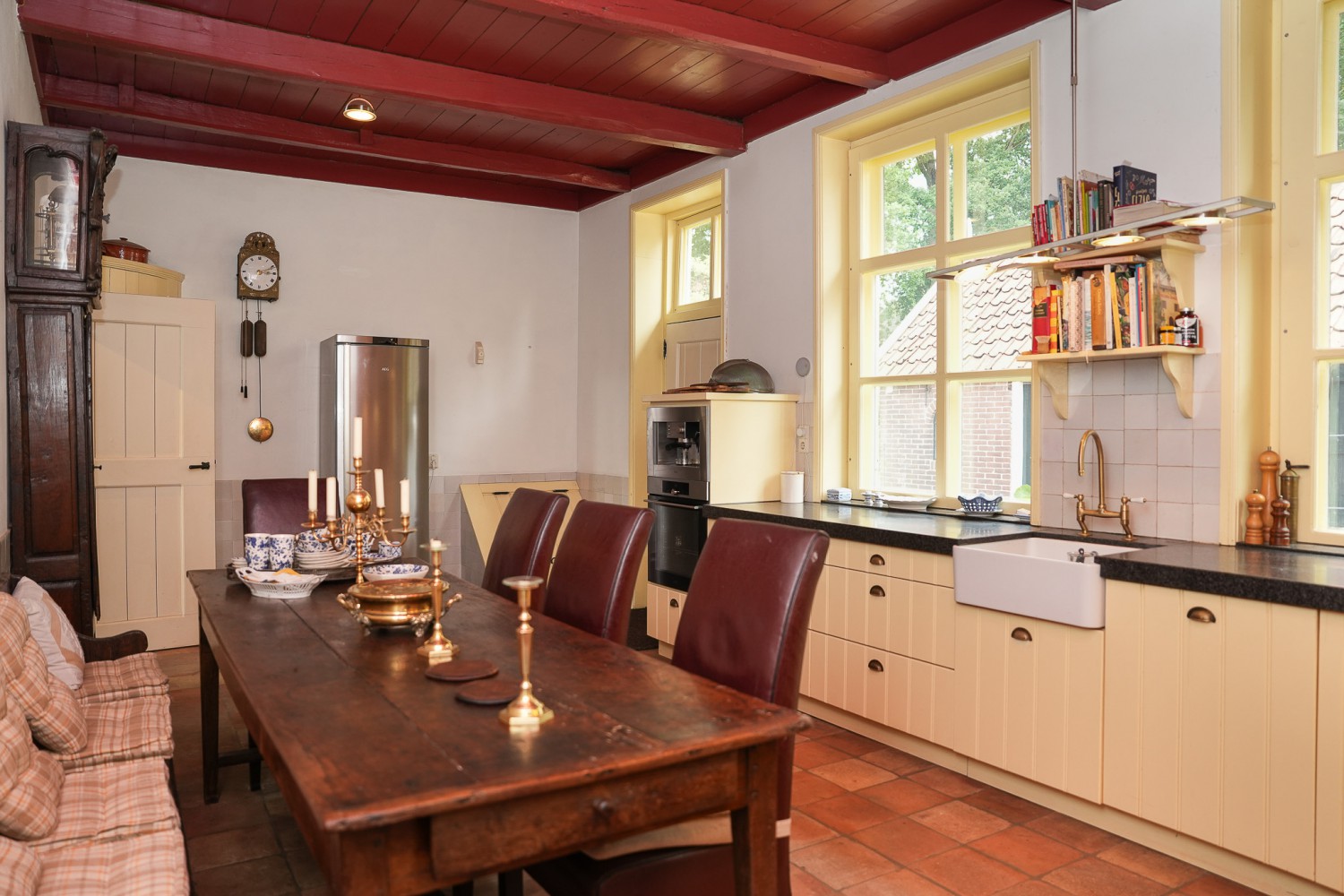 Eeuwenoude bomen en een groen tapijt omgeven deze halfvrijstaande woonboerderij uit 1853 en eerder. De ligging, in natuurgebied Het Reestdal, garandeert rust, ruimte, vergezichten en stilte. De hoeve, verbouwd in 2004- 2005 met behoud van unieke en karakteristieke details, is levensloopbestendig met slapen en wonen op de begane grond. De authenticiteit straalt af van de klokgevel aan de voorzijde en ademt door alle vertrekken. Het tegelplateau in de grote schouw van de woonkamer schittert in al zijn eenvoud. Met een ludieke knipoog laten de deuren in de living zien waar vroeger de bedstedes waren. De stoere, degelijke gebinten in de slaapkamer op de begane grond en het atelier verhogen het fijne, geborgen gevoel van de boerderij. De vele ramen zorgen voor een intieme verbondenheid met de omringende natuur. Dit rijksmonument herbergt in totaal dertien kamers: zeven slaapkamers en vijf badkamers, oftewel volop comfort en leefruimte. De vroege ochtend in de onderhoudsvriendelijke tuin begint goed als u een ree spot terwijl de frisse boslucht zachtjes uw neus prikkelt en de vogels hun hoogste lied zingen. En wellicht een goedemorgen naar de buren met wie u een deel van de tuin en het bijbehorende onderhoud deelt.