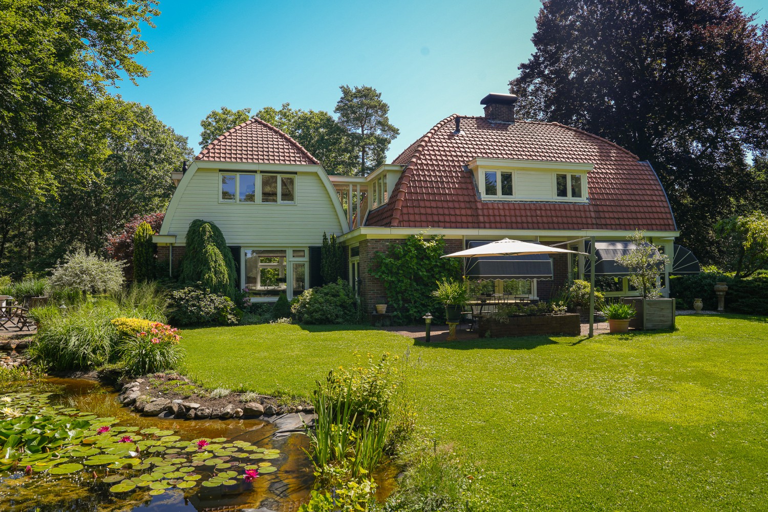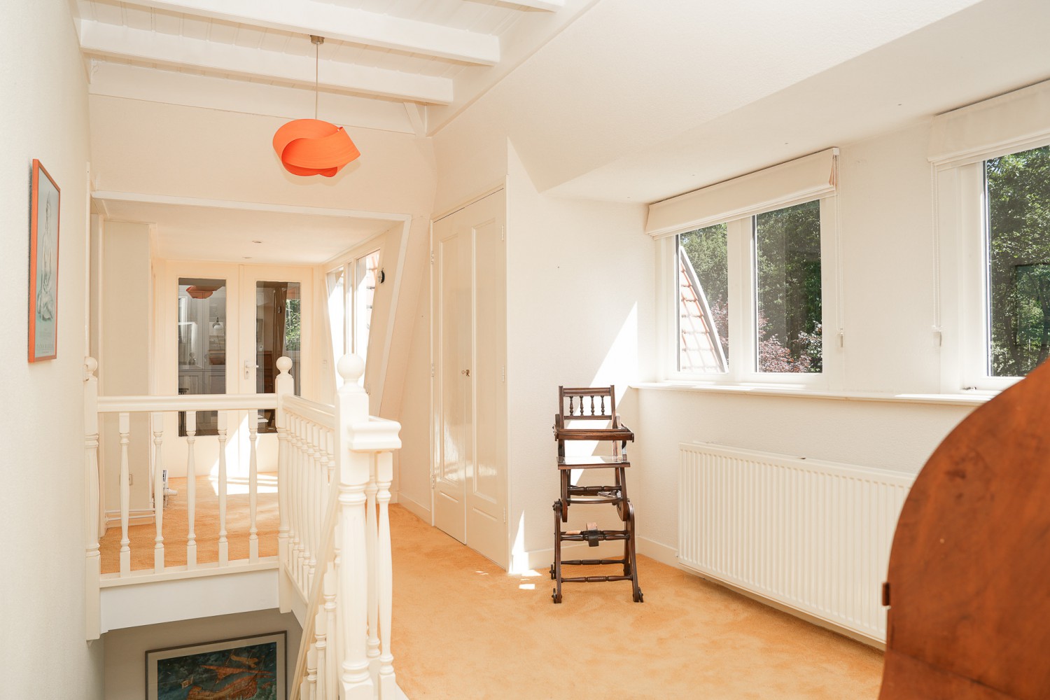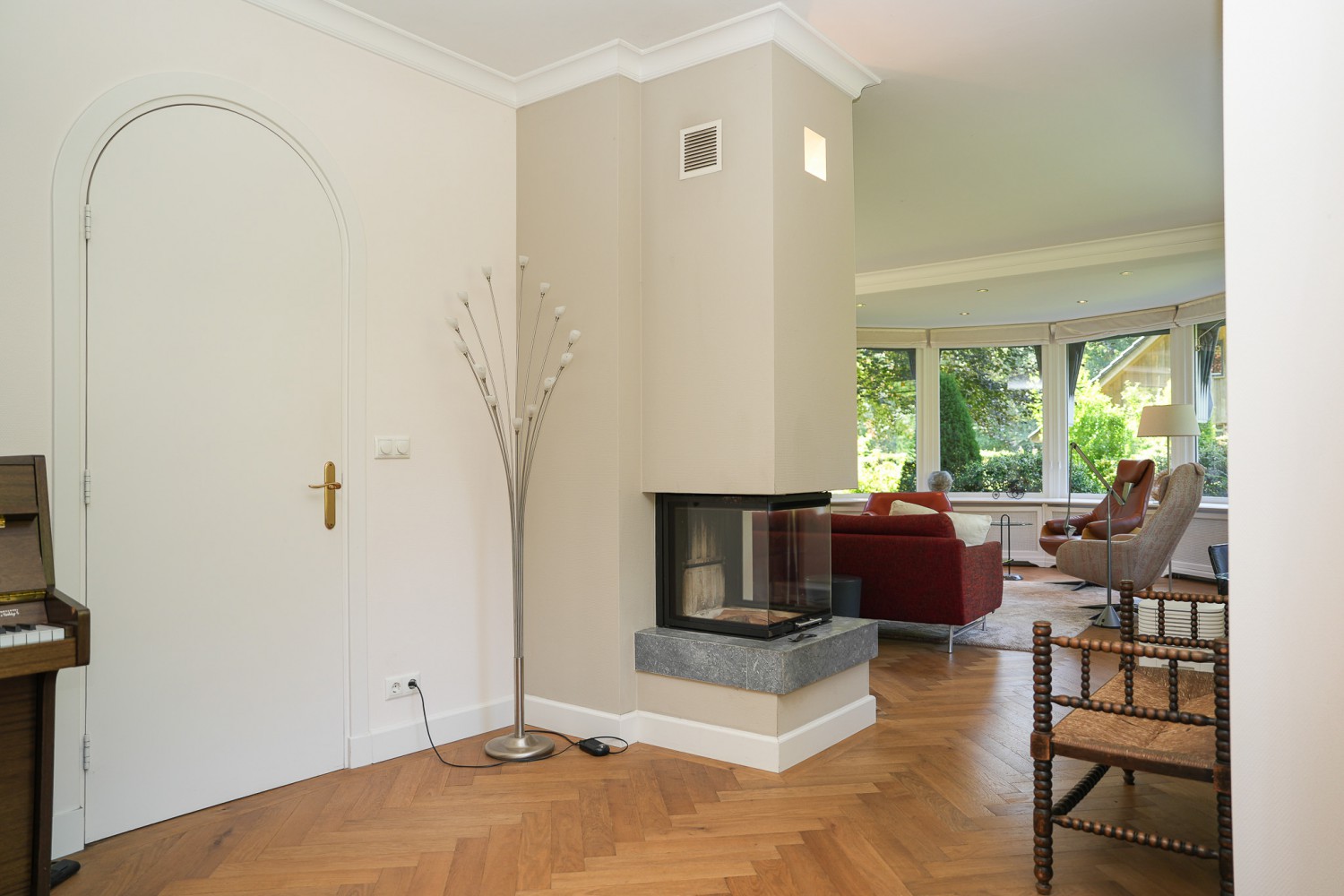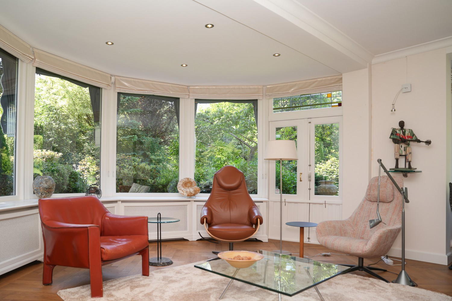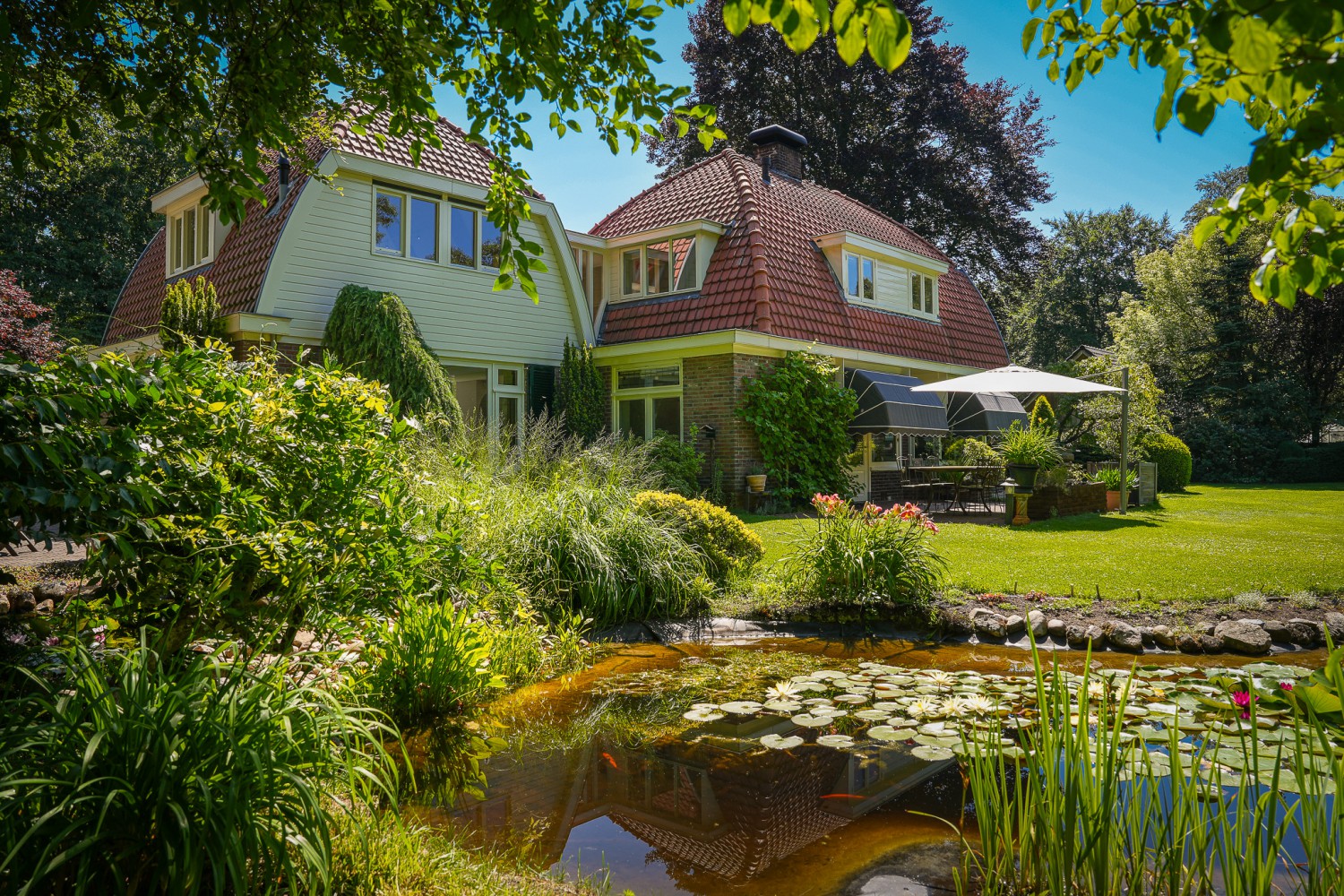 In het kloppend hart van de natuur ligt landgoed 'Het Rijssenseveld'. De Engelse landschapstuin die het landhuis uit 1934 omgeeft, is een walhalla voor de natuurliefhebber. Doorkijkjes, borders en een waterpartij met kwakende kikkers op een bed van waterlelies. Bovendien is het landgoed omgeven door een bosrijke omgeving. Bosdieren zoals reeën zijn uw naaste buren oftewel u geniet van maximale privacy. Met dit landhuis beleeft u elke dag het buitenleven. Diverse vertrekken zoals de woon- en eetkamer met serre, de keuken, de werk- en slaapkamer hebben ramen aan drie zijden, zodat u ook binnenshuis de wonderen van de natuur kunt aanschouwen. Zowel de tuin als de woning zijn perfect onderhouden. Het isolatie- en verwarmingssysteem is goed doordacht, ontworpen en uitgevoerd. De cv-ketel uit 2024 is tevens geschikt voor waterstof. De op maat gemaakte boekenkasten in de eet- en werkkamer sluiten naadloos aan op de lichte, open sfeer van het interieur. Bijzonder is ook de overloop met sluis naar de aanbouw op de verdieping. Door de vele raampartijen is de oversteek een groen panorama. En niet te vergeten de rust in de slaapkamer die thans in gebruik is als werkkamer. Die is niet te vangen in woorden, maar een must om te ervaren.