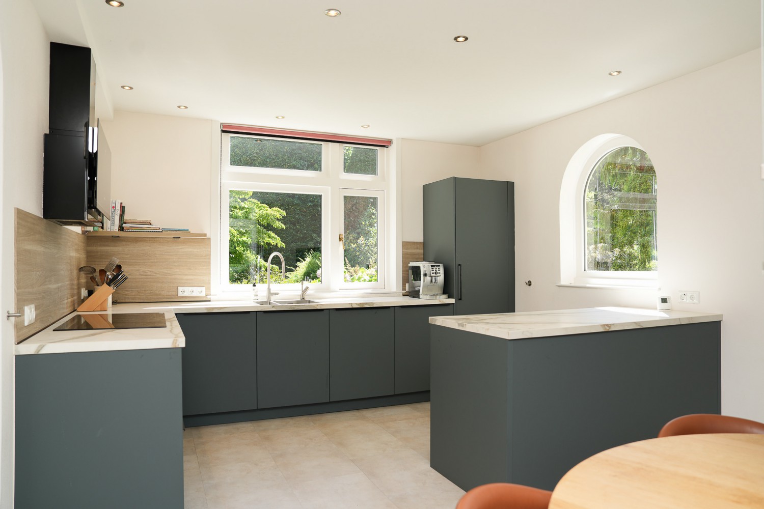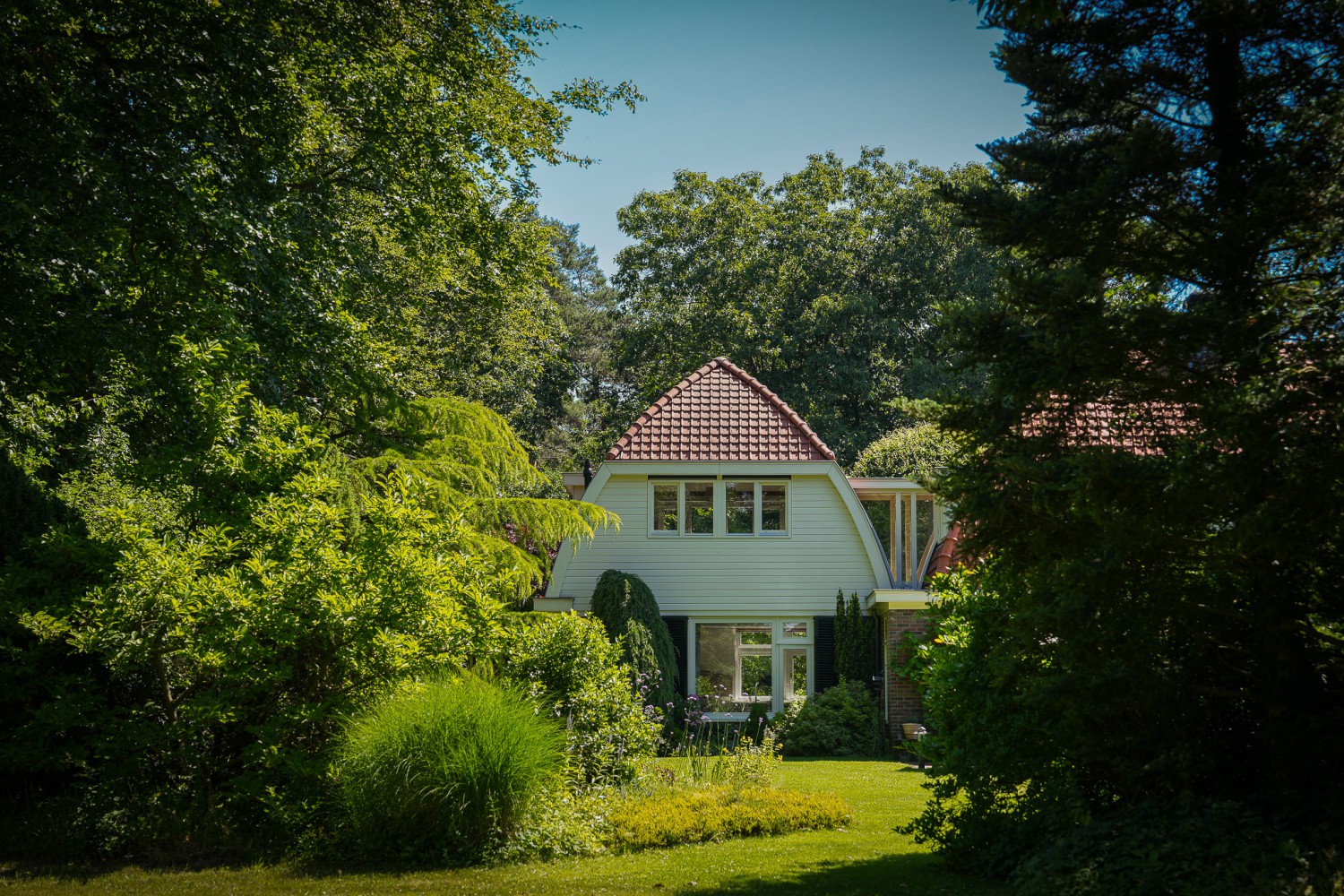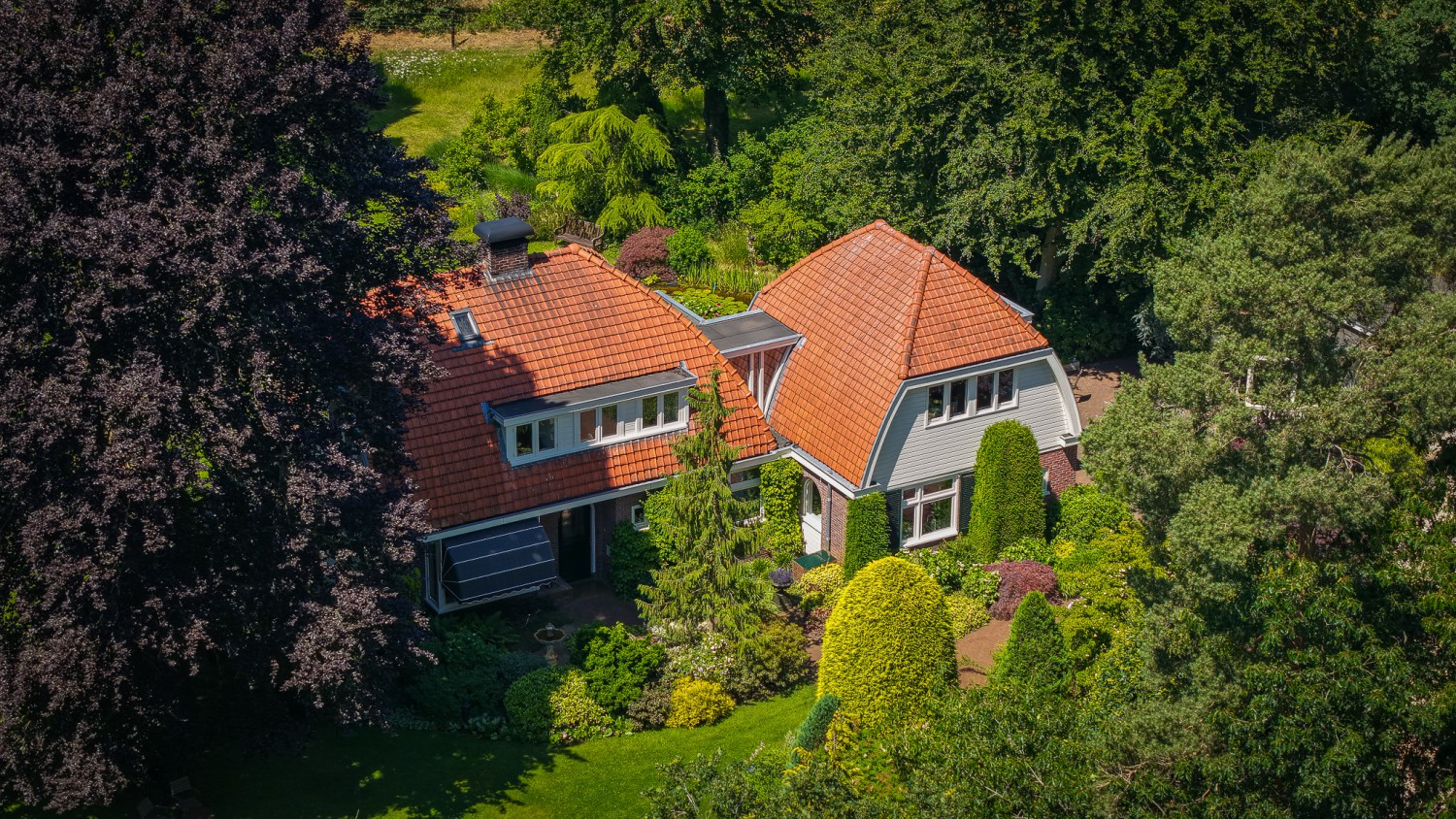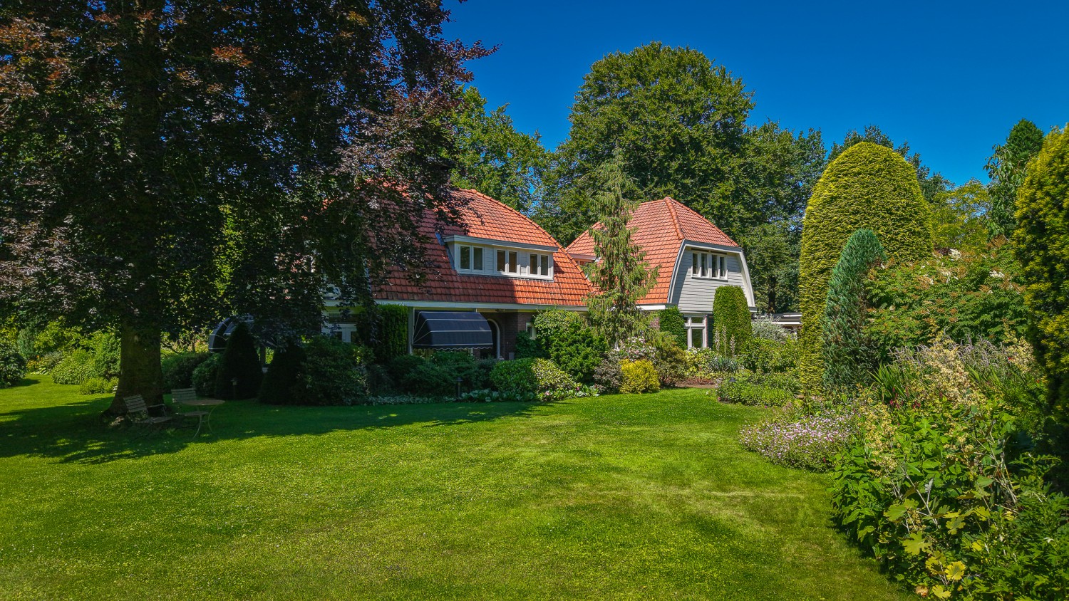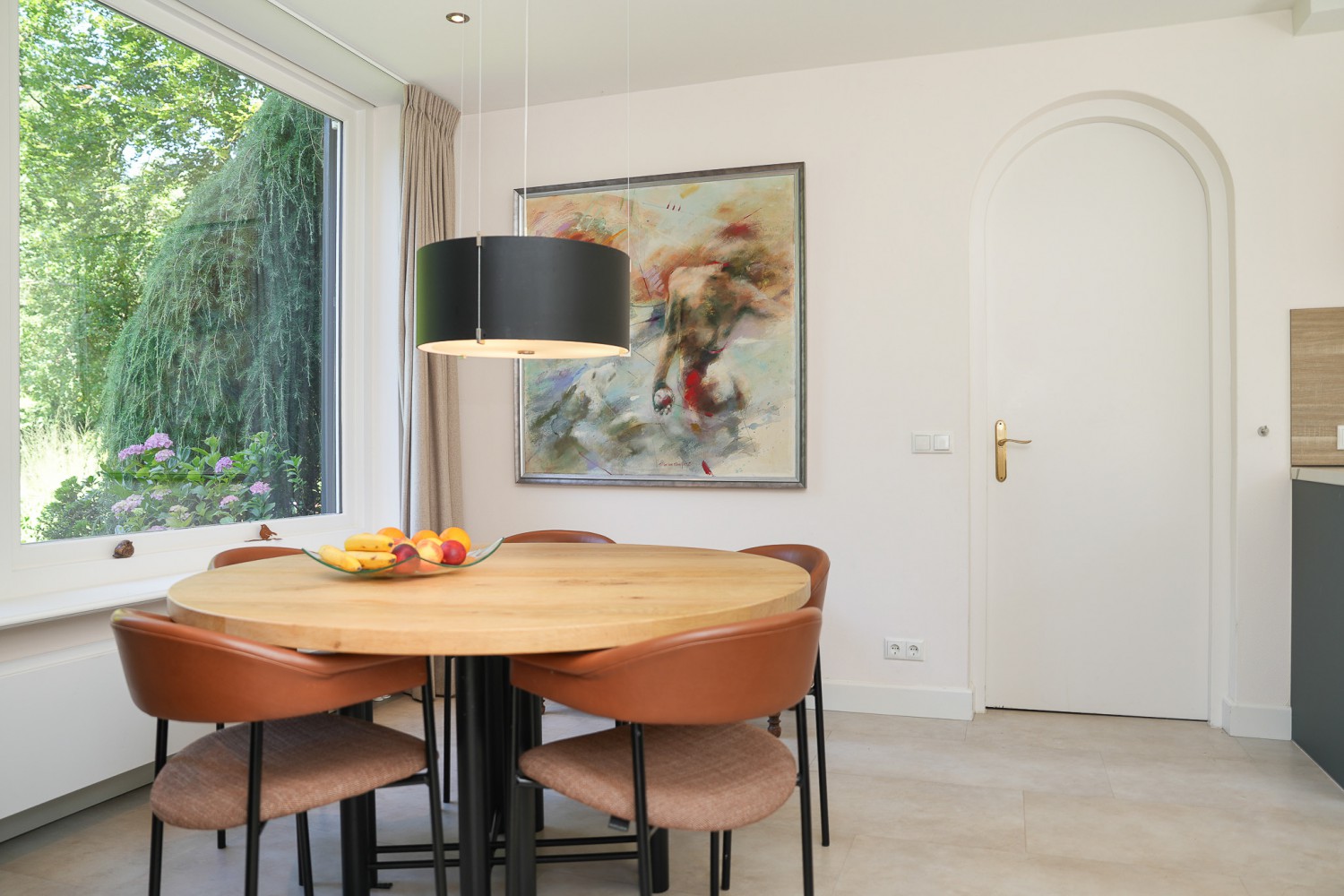 In het kloppend hart van de natuur ligt landgoed 'Het Rijssenseveld'. De Engelse landschapstuin die het landhuis uit 1934 omgeeft, is een walhalla voor de natuurliefhebber. Doorkijkjes, borders en een waterpartij met kwakende kikkers op een bed van waterlelies. Bovendien is het landgoed omgeven door een bosrijke omgeving. Bosdieren zoals reeën zijn uw naaste buren oftewel u geniet van maximale privacy. Met dit landhuis beleeft u elke dag het buitenleven. Diverse vertrekken zoals de woon- en eetkamer met serre, de keuken, de werk- en slaapkamer hebben ramen aan drie zijden, zodat u ook binnenshuis de wonderen van de natuur kunt aanschouwen. Zowel de tuin als de woning zijn perfect onderhouden. Het isolatie- en verwarmingssysteem is goed doordacht, ontworpen en uitgevoerd. De cv-ketel uit 2024 is tevens geschikt voor waterstof. De op maat gemaakte boekenkasten in de eet- en werkkamer sluiten naadloos aan op de lichte, open sfeer van het interieur. Bijzonder is ook de overloop met sluis naar de aanbouw op de verdieping. Door de vele raampartijen is de oversteek een groen panorama. En niet te vergeten de rust in de slaapkamer die thans in gebruik is als werkkamer. Die is niet te vangen in woorden, maar een must om te ervaren.